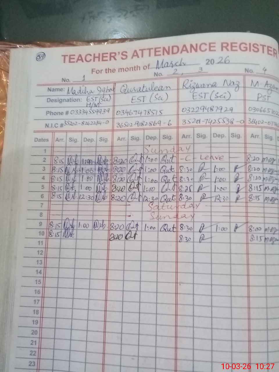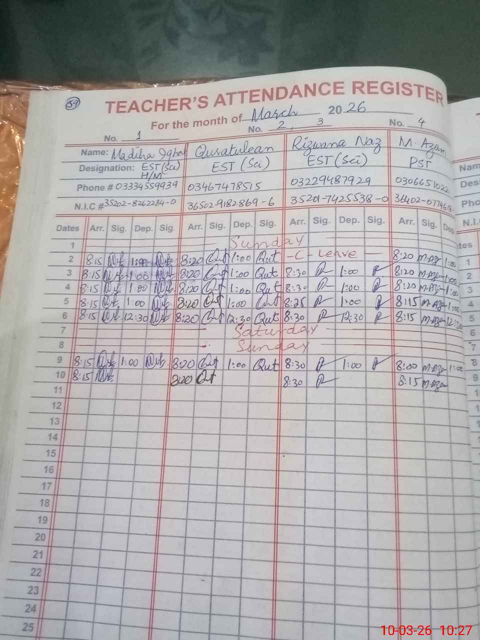 | Name: Ma**** Iq**** Designation: (School Headmaster's/Headmistress's) EST Phone/Cell Number: 03**** |