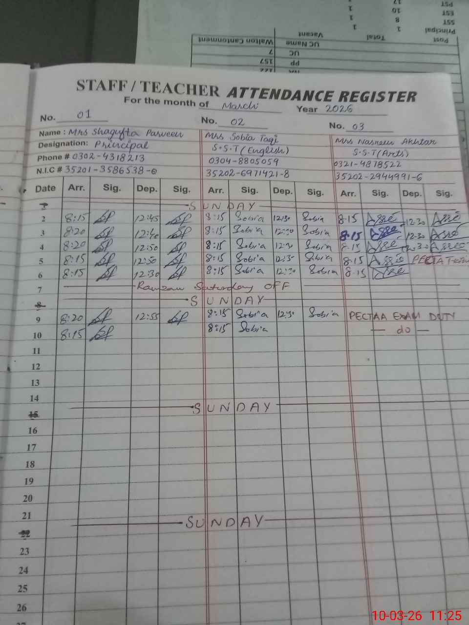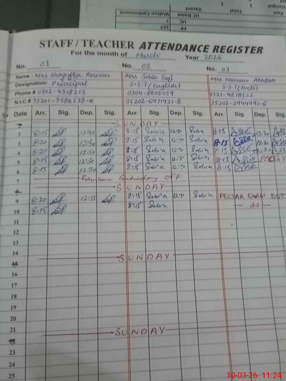 | 35**** | Na**** Ak**** | SST Arts | Regular | 0 | 0 | 0 | 0 | 0 | 0 | 0 | 0 | 0 | Exam Duty |