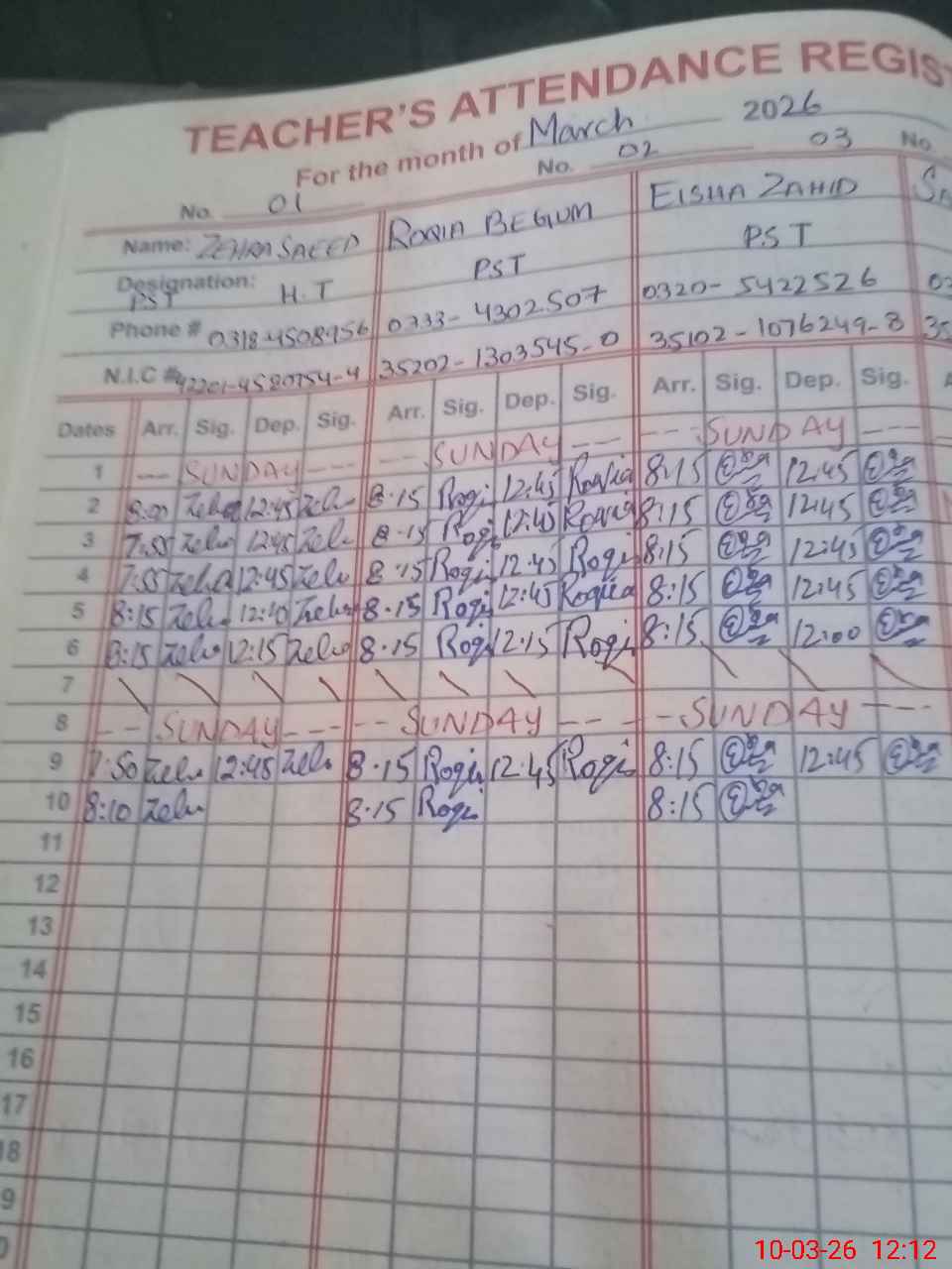 | 35**** | Zo**** Ah**** | NQ | 3 | 0 | 8 | 0 | 0 | 0 | 0 | 0 | 3 | Absent (Un-Authorized) | |