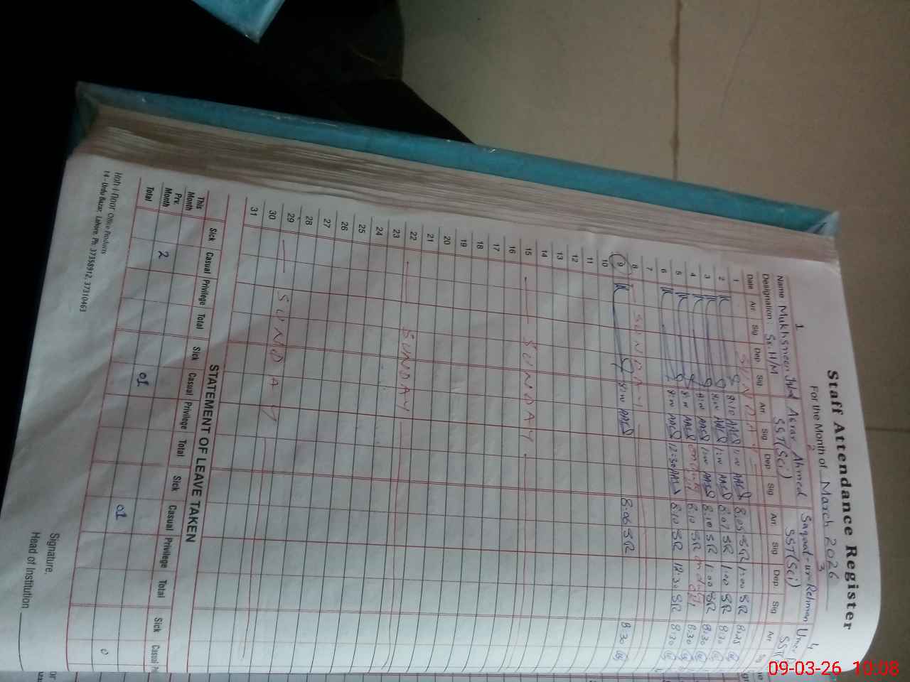 | Name: Mu**** Iq**** Designation: (School Headmaster's/Headmistress's) HEADMASTER Phone/Cell Number: 03**** |
