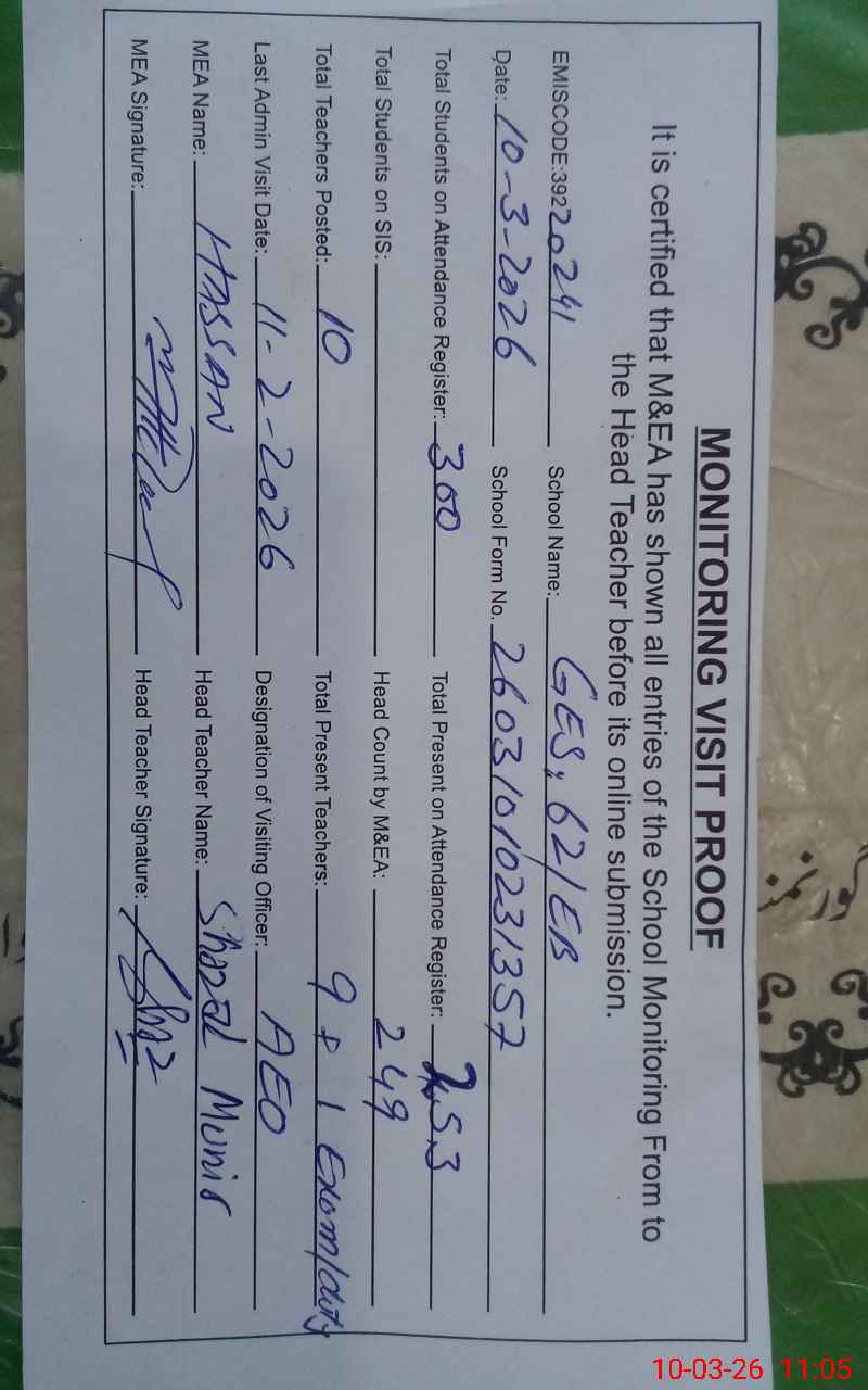 | EMIS Code: 39220241 | Name of School: GES 62 EB | |||