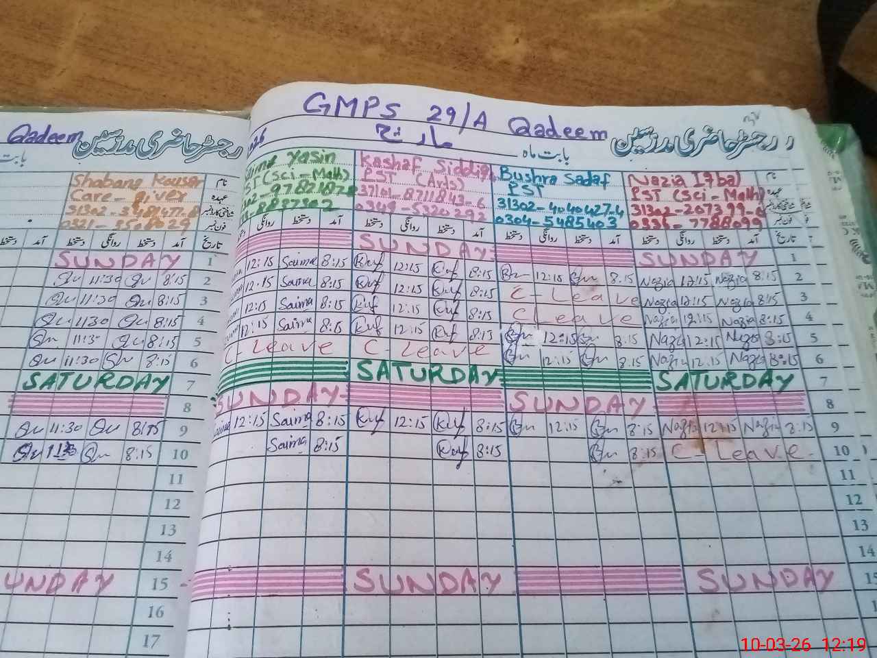 | EMIS Code: 31320590 | Name of School: GMPS CHAK NO.29 QADEEM | |||