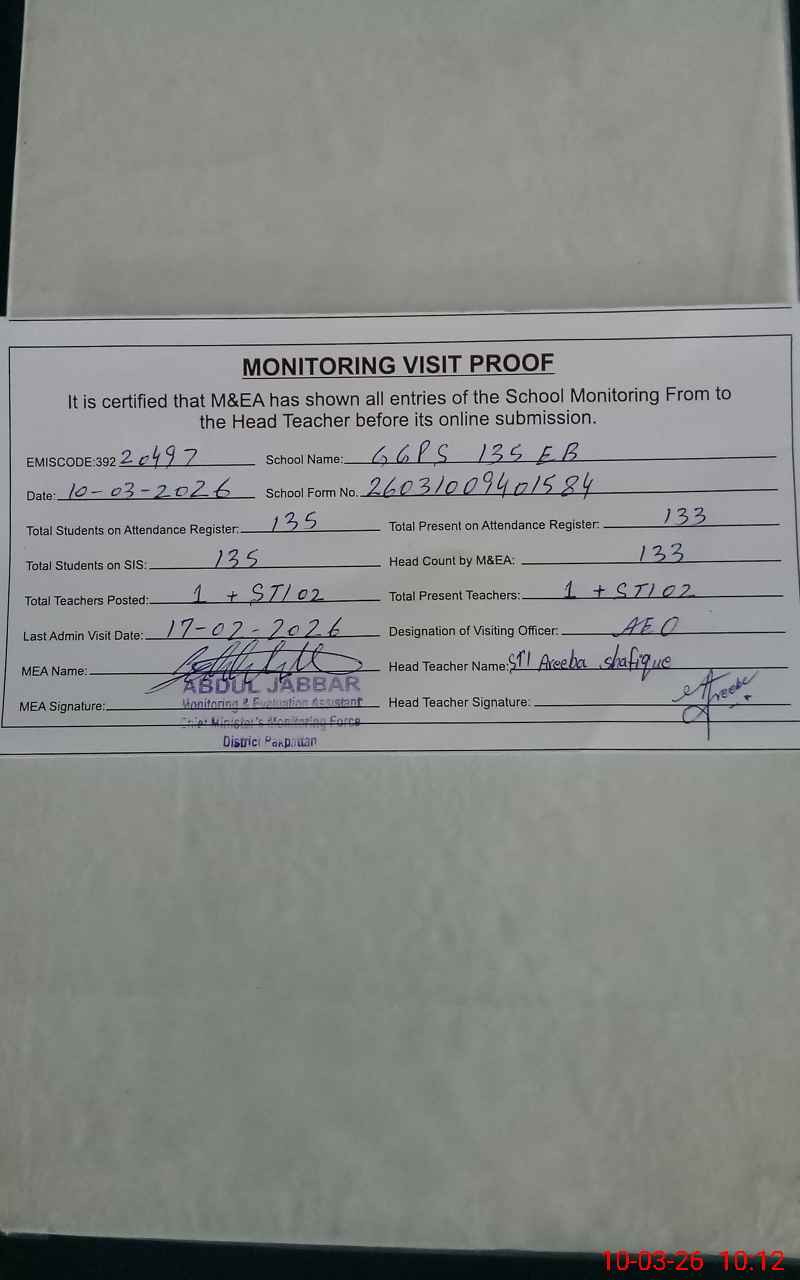 | EMIS Code: 39220497 | Name of School: GGPS 135/EB | |||