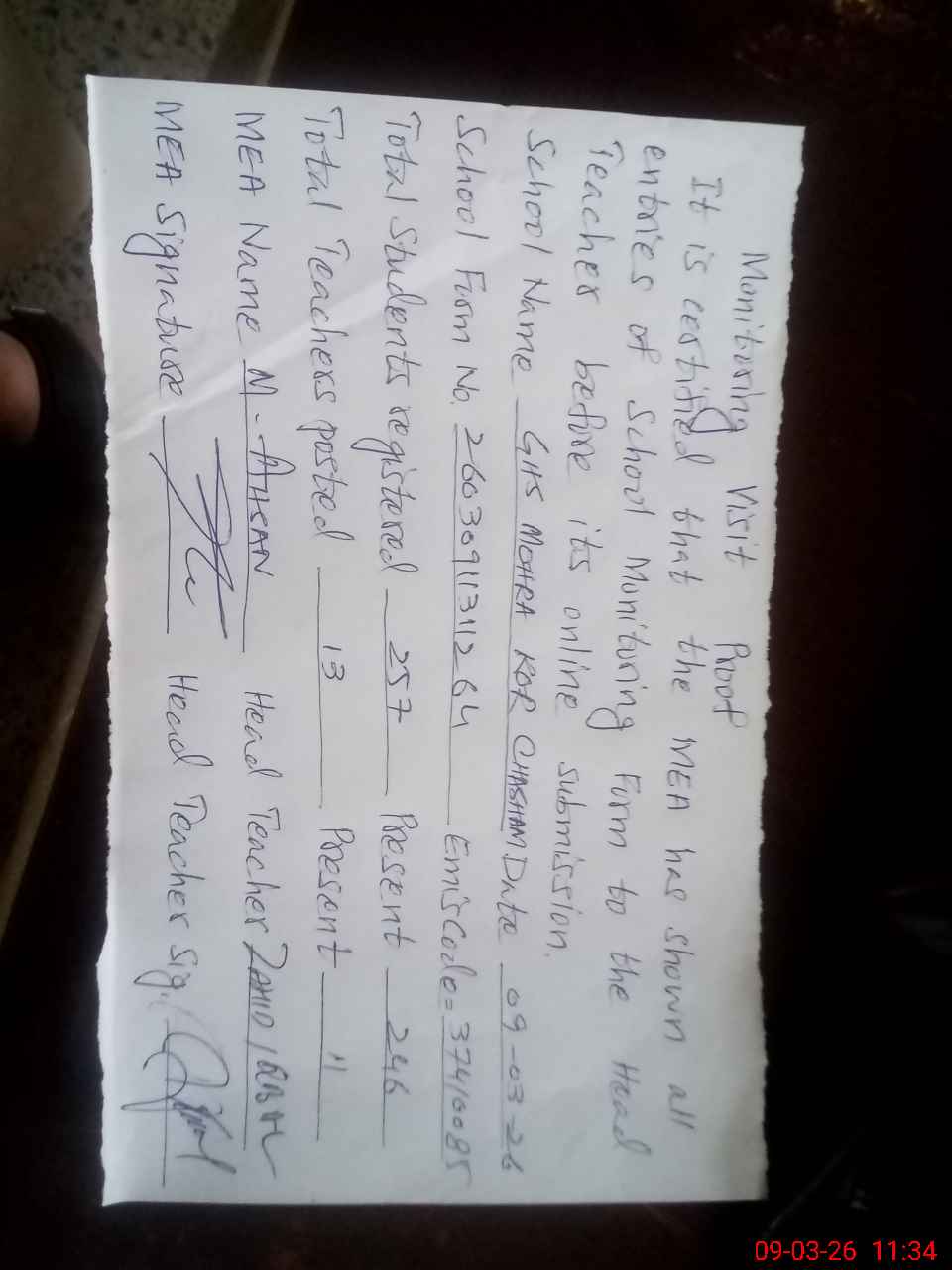 | EMIS Code: 37410085 | Name of School: GHS MOHRA KORE CHASHAM | |||