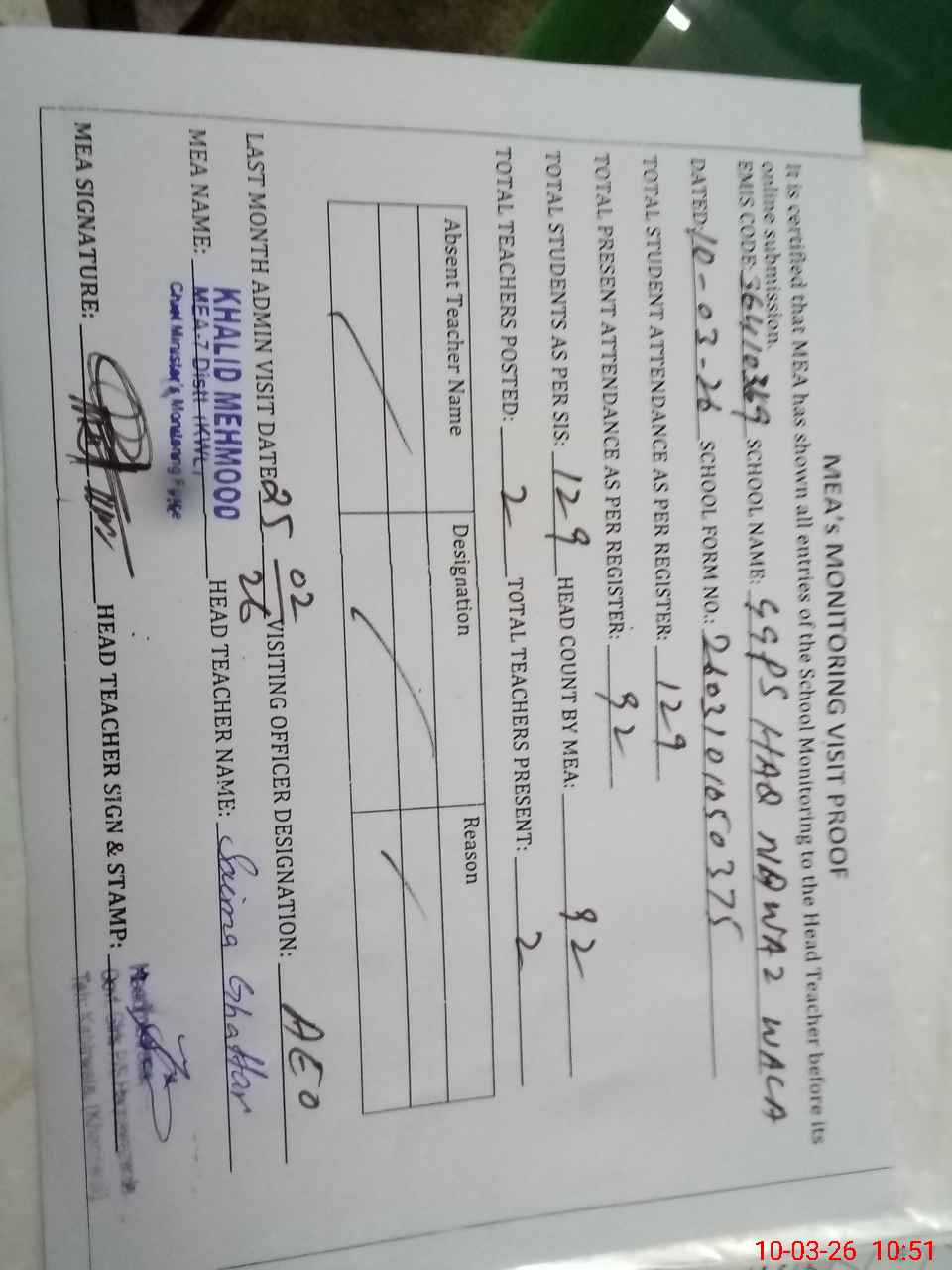 | EMIS Code: 36410369 | Name of School: GGPS HAQ NAWAZ WALA, KABIRWALA | |||