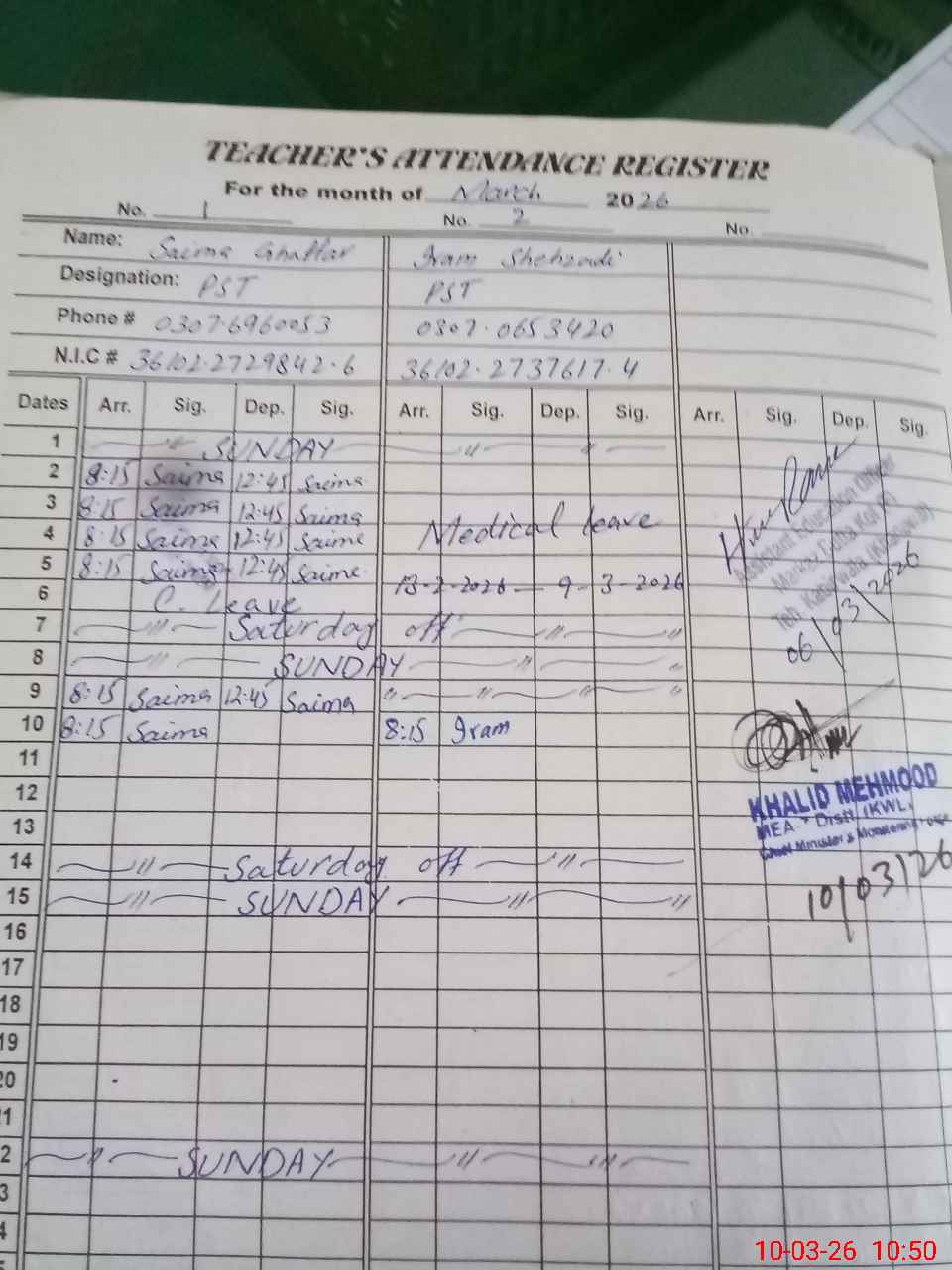 | Name: Sa**** Ga**** Designation: (School Headmaster's/Headmistress's) PST Phone/Cell Number: 03**** |
