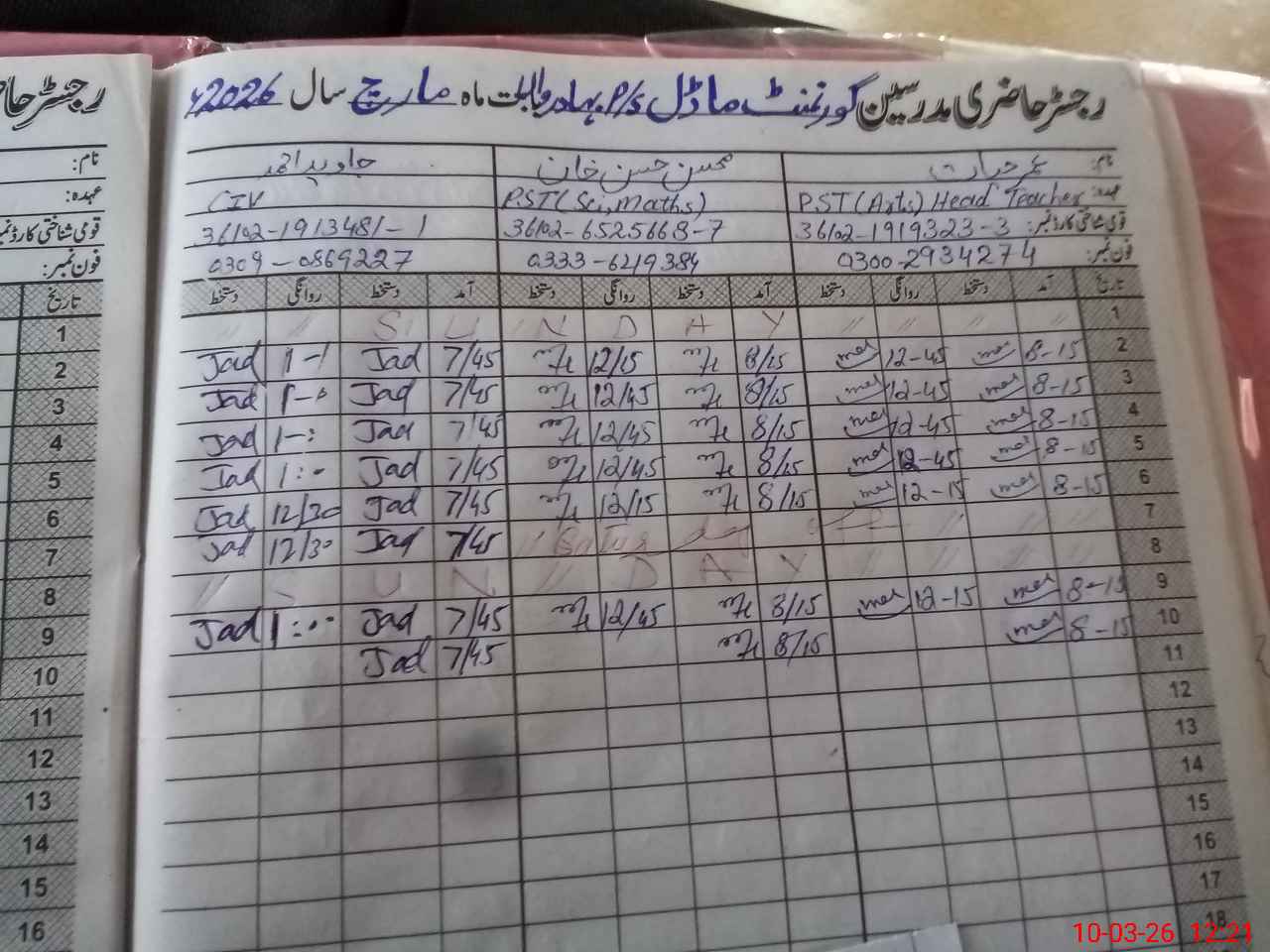 | Name: Um**** Ha**** Designation: (School Headmaster's/Headmistress's) PST Phone/Cell Number: 03**** |