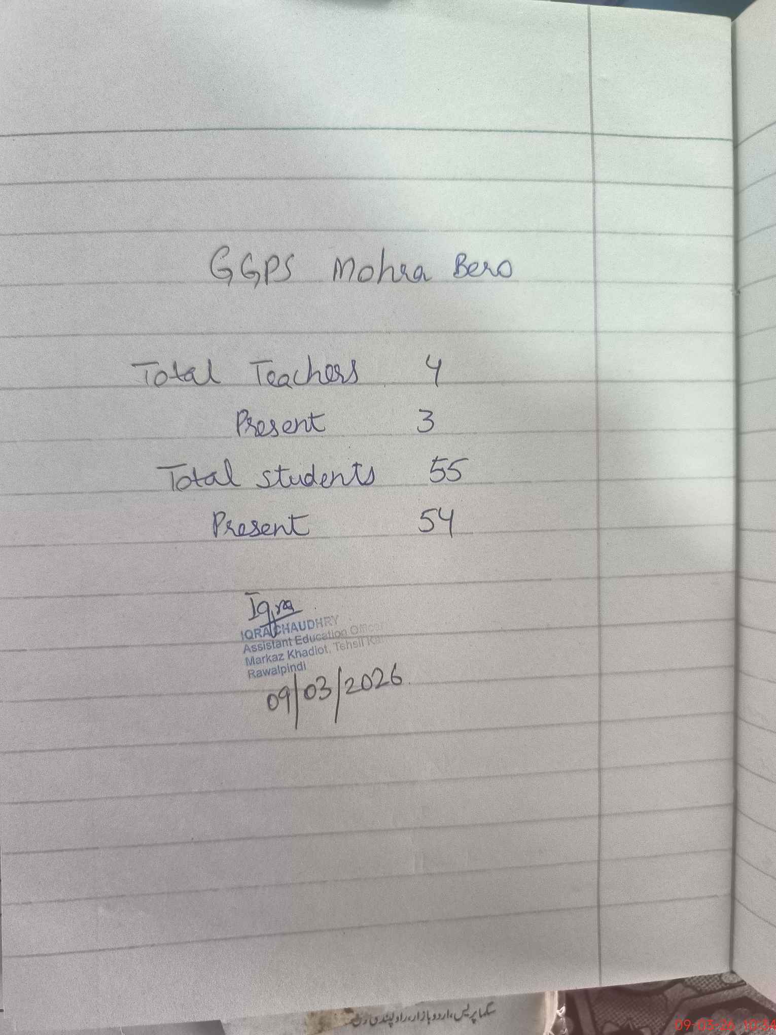 | EMIS Code: 37310376 | Name of School: GGPS MOHRA BERO | |||
