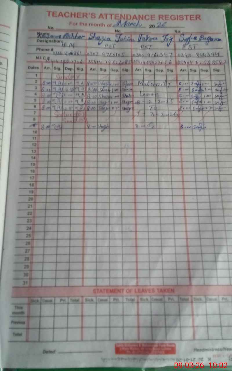 | 38**** | Sa**** Ch**** | PST Arts | Regular | 0 | 0 | 0 | 0 | 0 | 0 | 0 | 0 | 0 | Absent (Un-Authorized) |