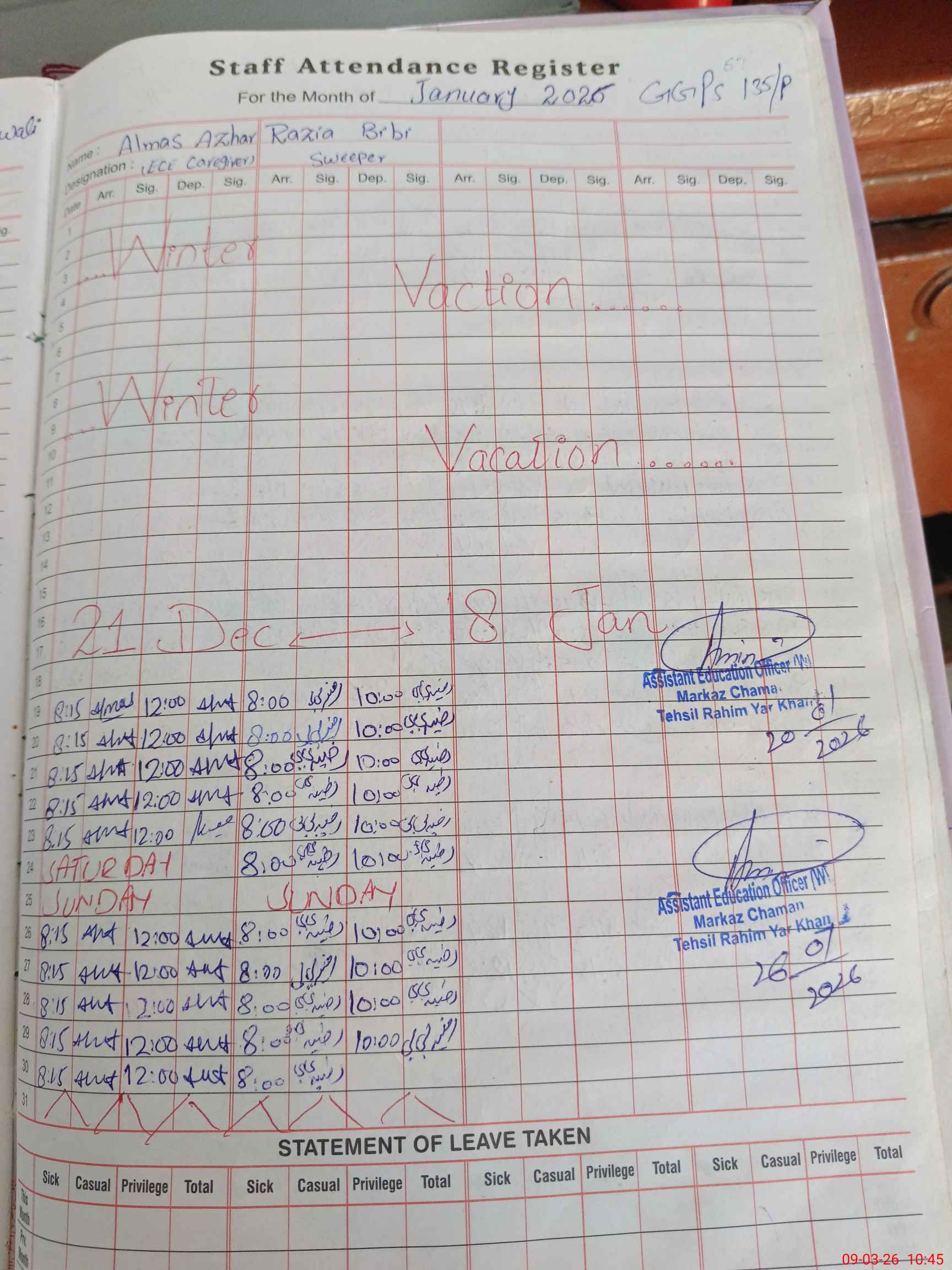 | Name: Na**** An**** Designation: (School Headmaster's/Headmistress's) PST Phone/Cell Number: 03**** |