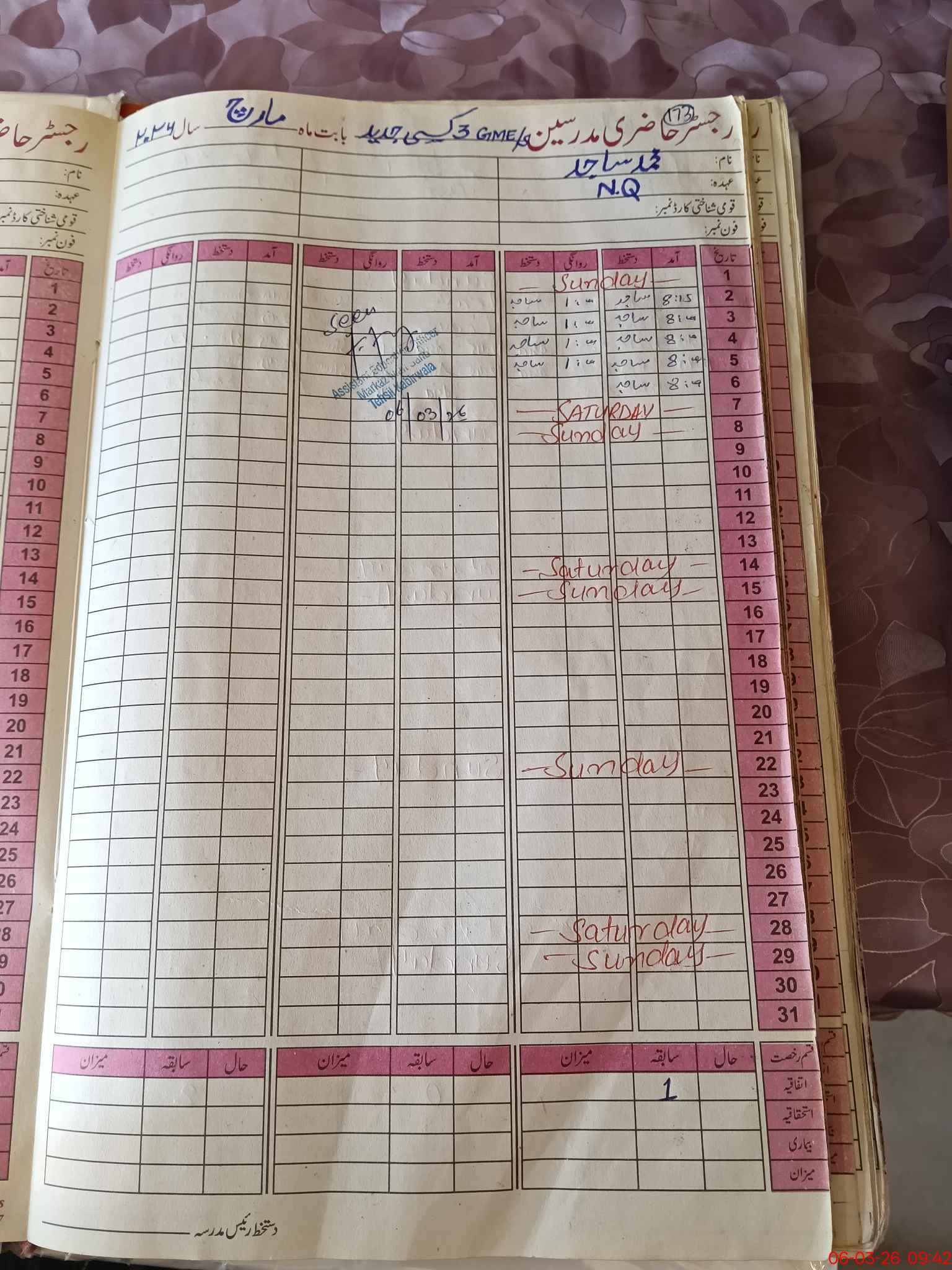 | 36**** | Sh**** Sa**** | EST Science | Regular | 0 | 0 | 0 | 0 | 0 | 0 | 0 | 0 | 0 | Absent (Un-Authorized) |