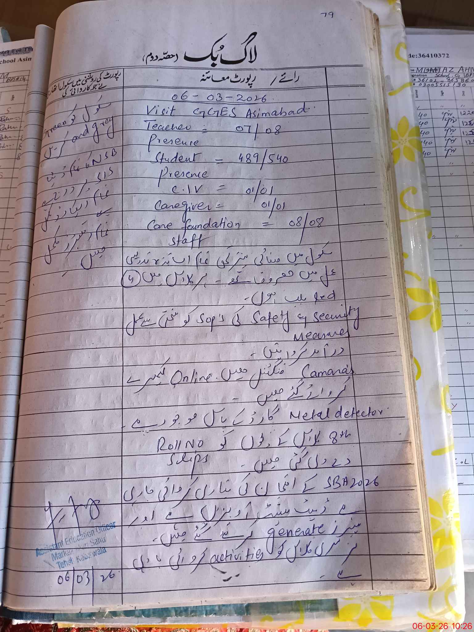 | Certified that this School was Inspected by the Undersigned MEA/DMO Today and the Information Stated Above is as Per Record. | |||||