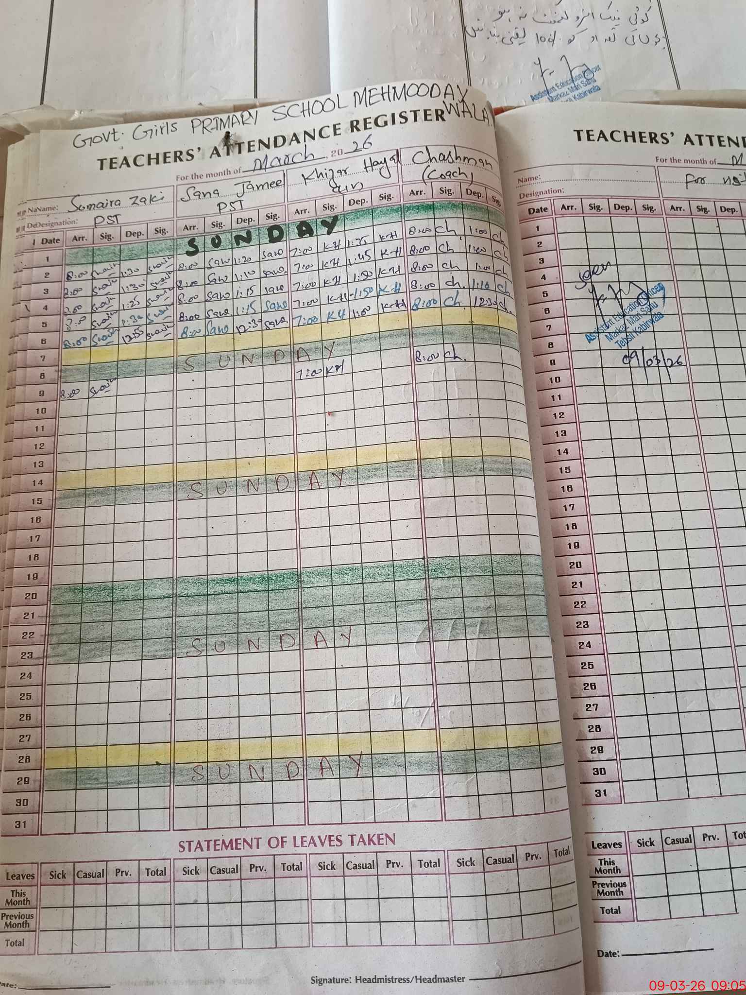 | Name: SU**** ZA**** Designation: (School Headmaster's/Headmistress's) PST Phone/Cell Number: 03**** |