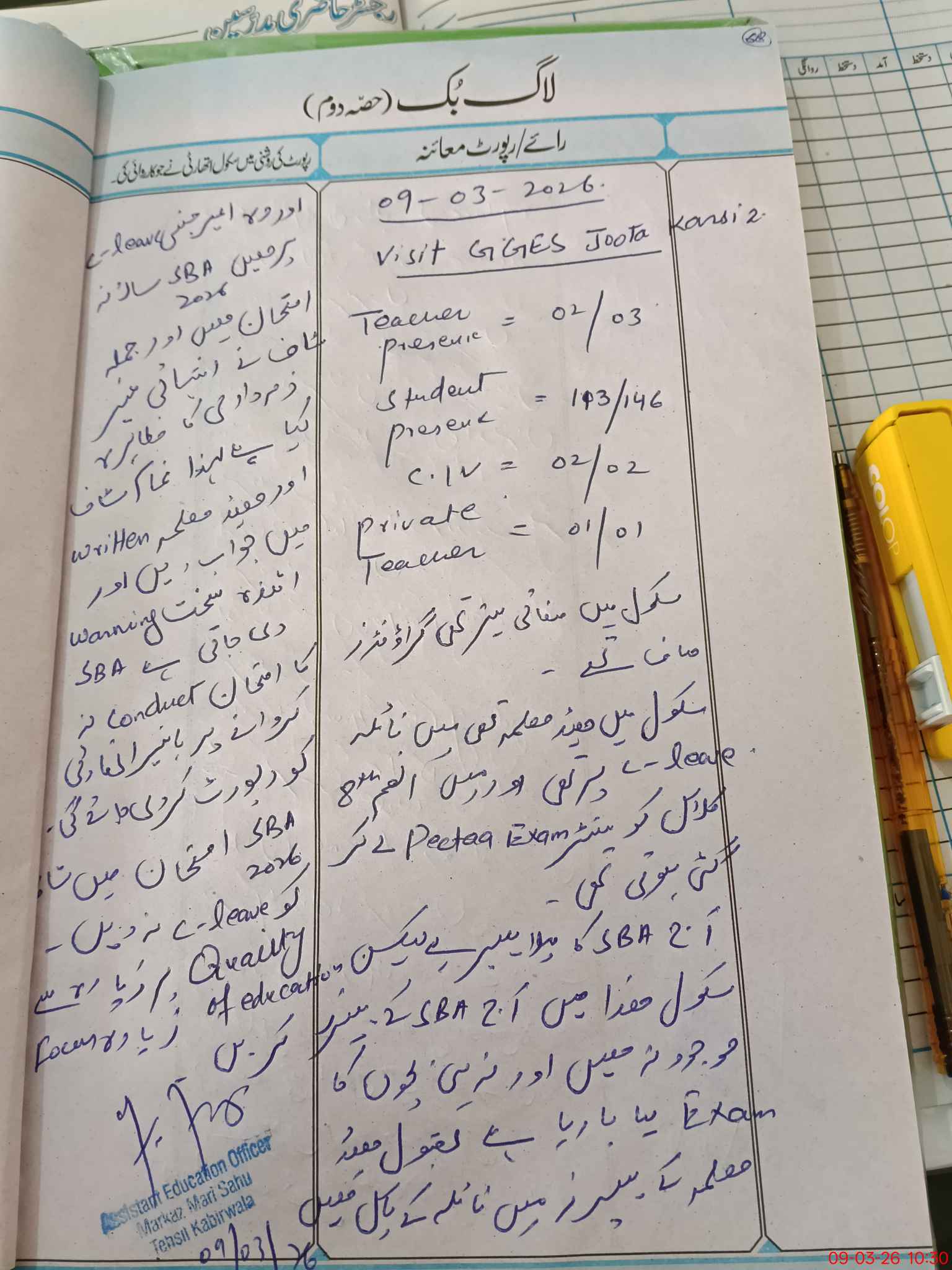 | Attendance Register | Head Teacher | MEA with School | Visit Proof |