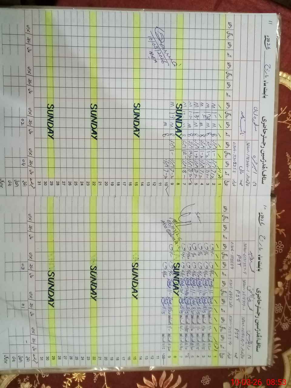 | CNIC | Full Name | Designation | R/C | Absence During Last Calender Month |