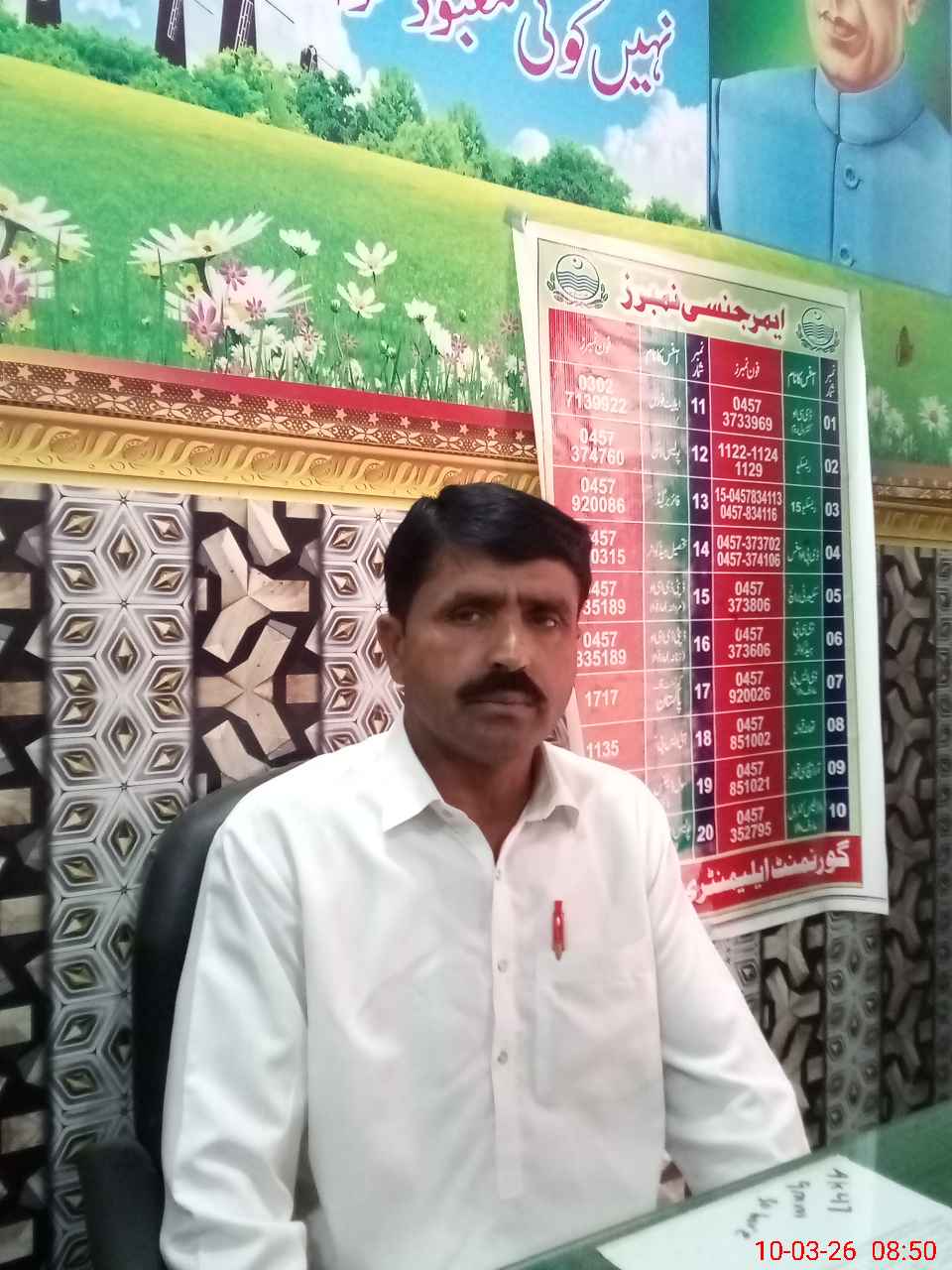 | Name: SH**** AL**** Designation: (School Headmaster's/Headmistress's) S.S.T.(SCIENCE) Phone/Cell Number: 03**** |