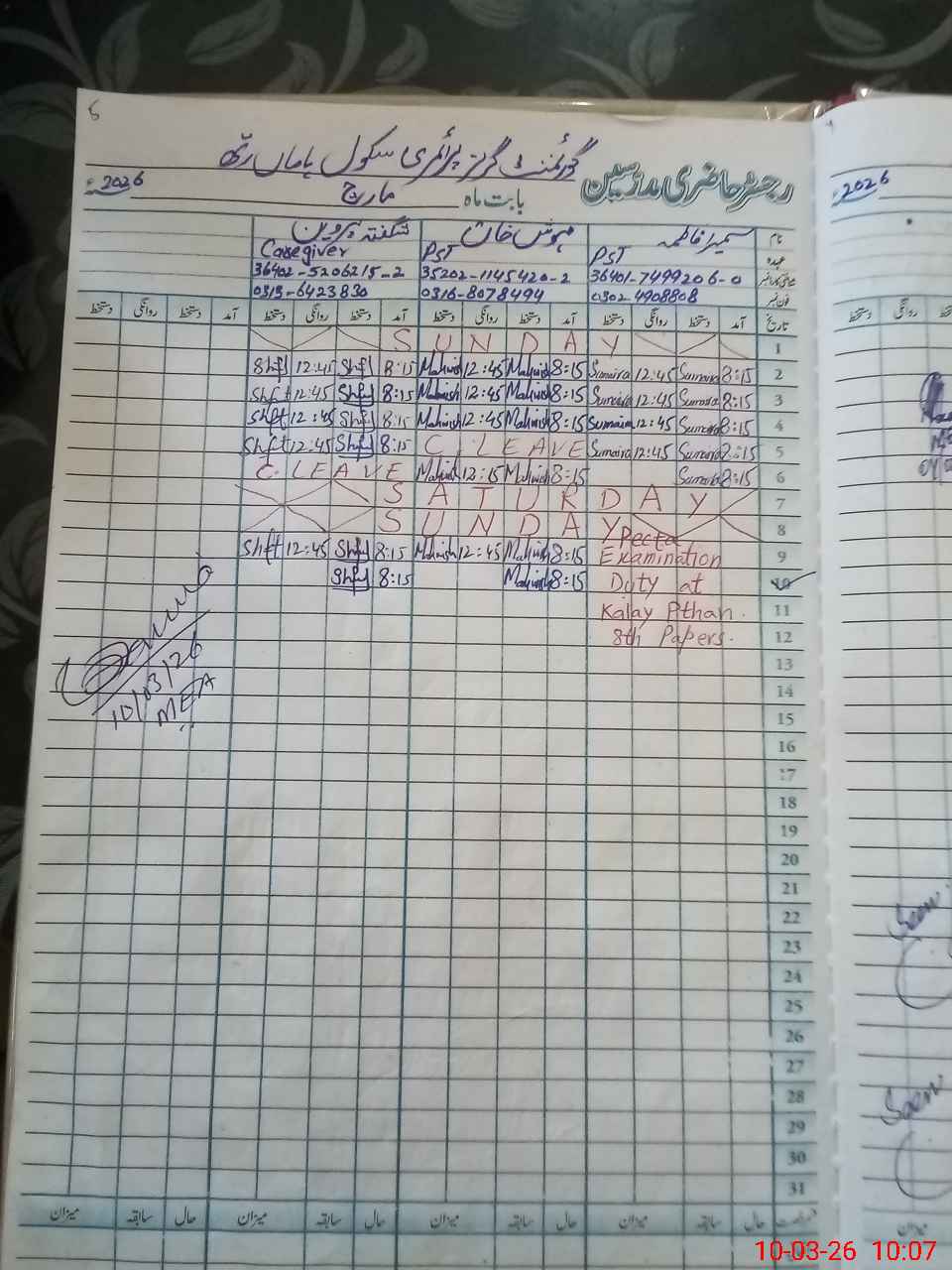 | 36**** | Su**** Fa**** | PST Science/Maths | Regular | 0 | 0 | 0 | 0 | 0 | 0 | 0 | 0 | 0 | Exam Duty |
