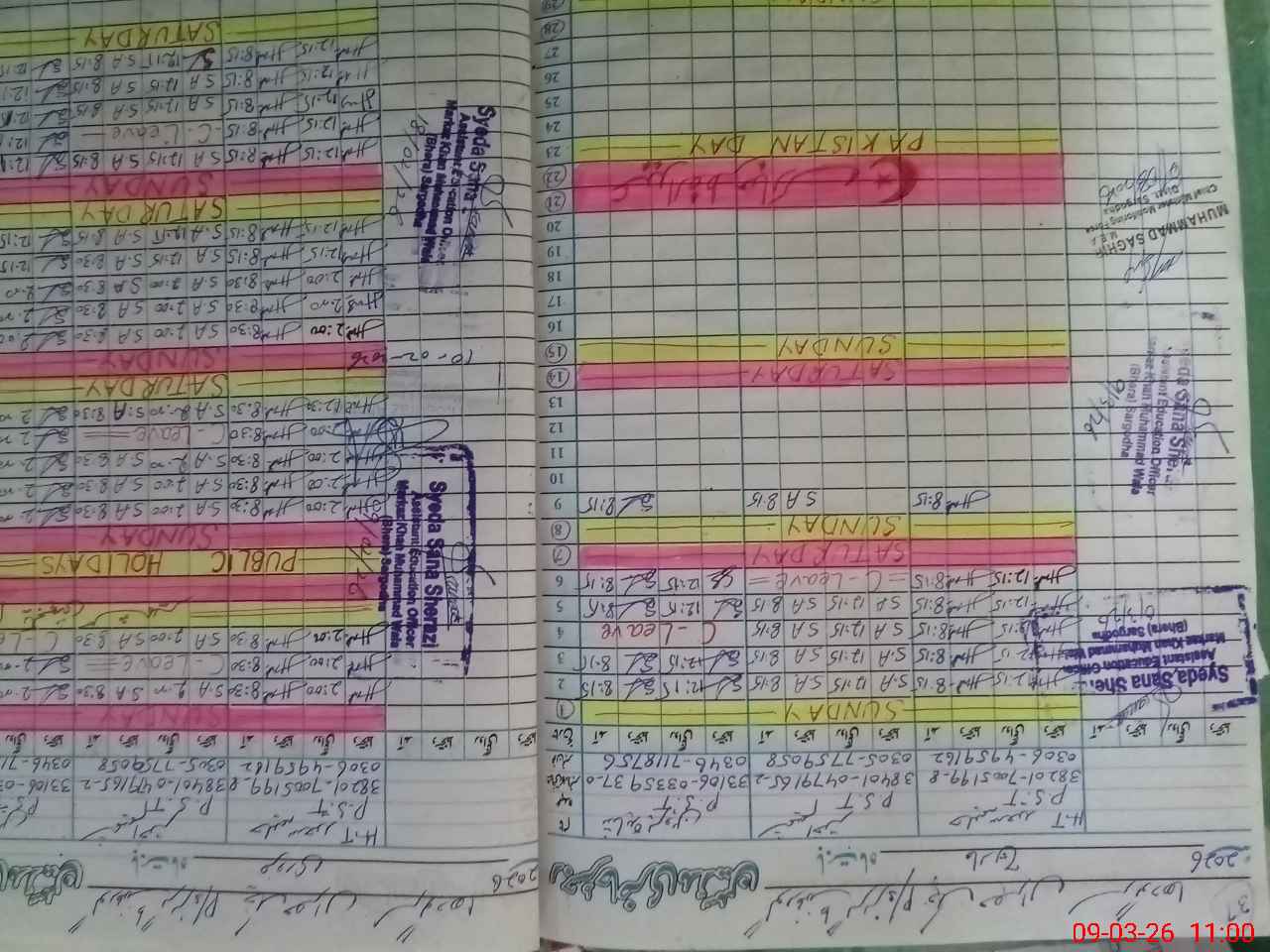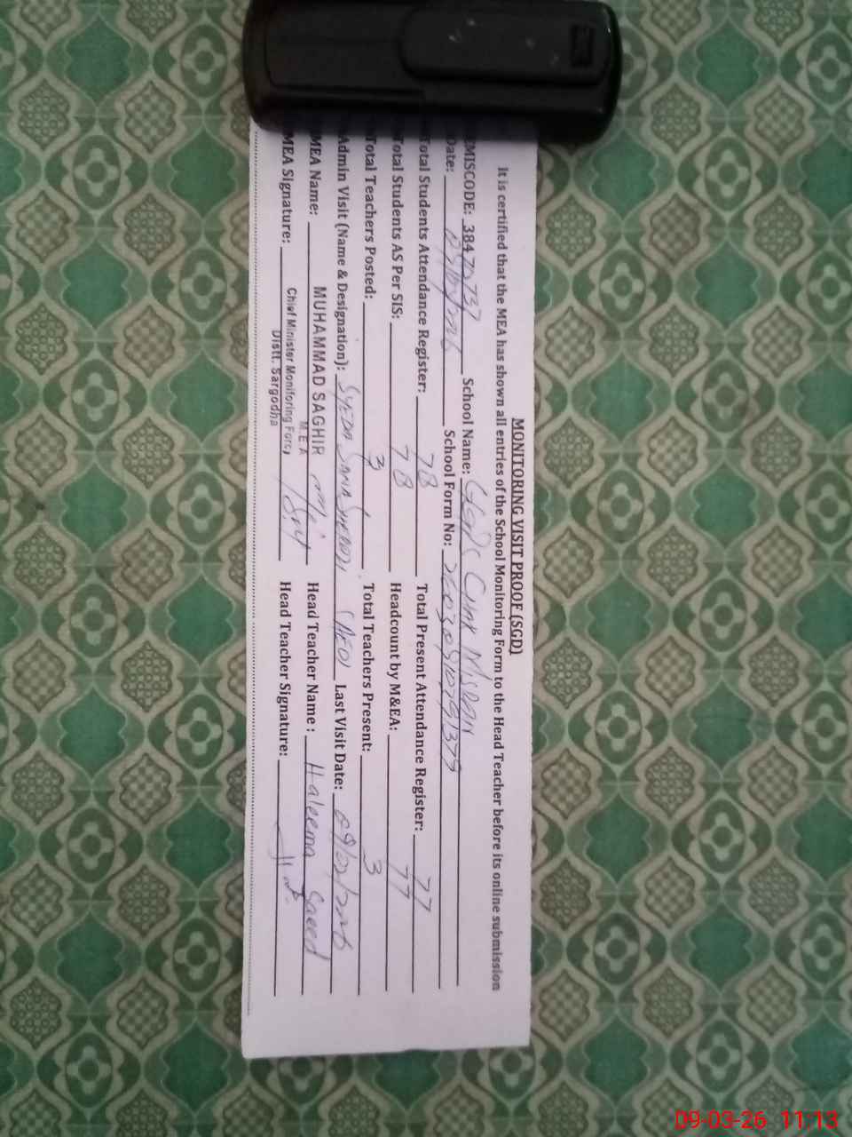 | Name: HA**** SA**** Designation: (School Headmaster's/Headmistress's) PST Phone/Cell Number: 03**** |