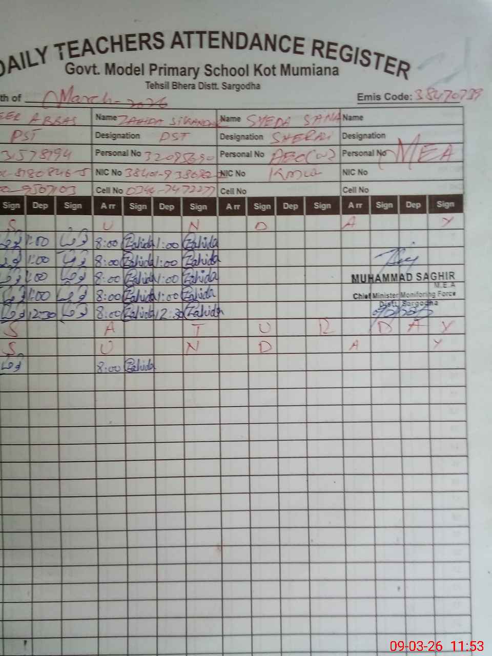 | Name: TA**** AB**** Designation: (School Headmaster's/Headmistress's) PST ( SCI-MATH) Phone/Cell Number: 03**** |