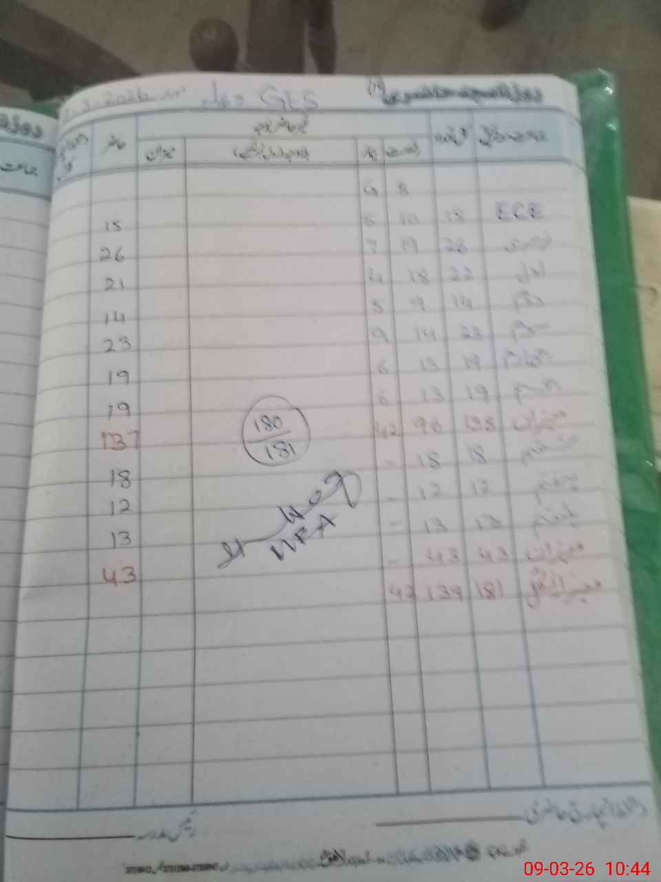 | Total Students Present | 0 | 15 | 21 | 14 | 23 | 19 | 19 | 18 | 12 | 13 | 180 | |||||