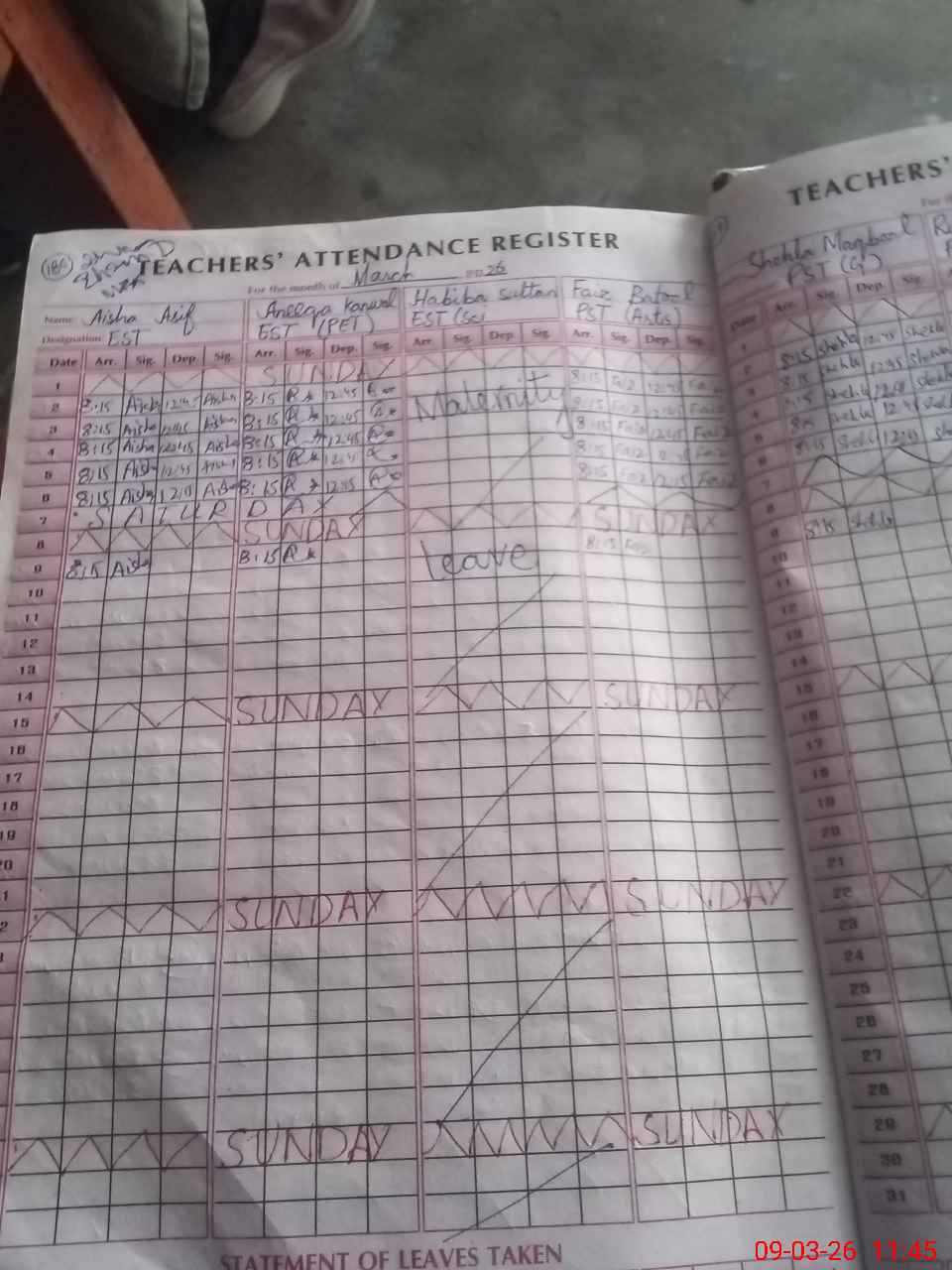| 37**** | Ha**** Su**** | EST Science | Regular | 0 | 0 | 0 | 0 | 0 | 0 | 0 | 0 | 0 | Maternity |