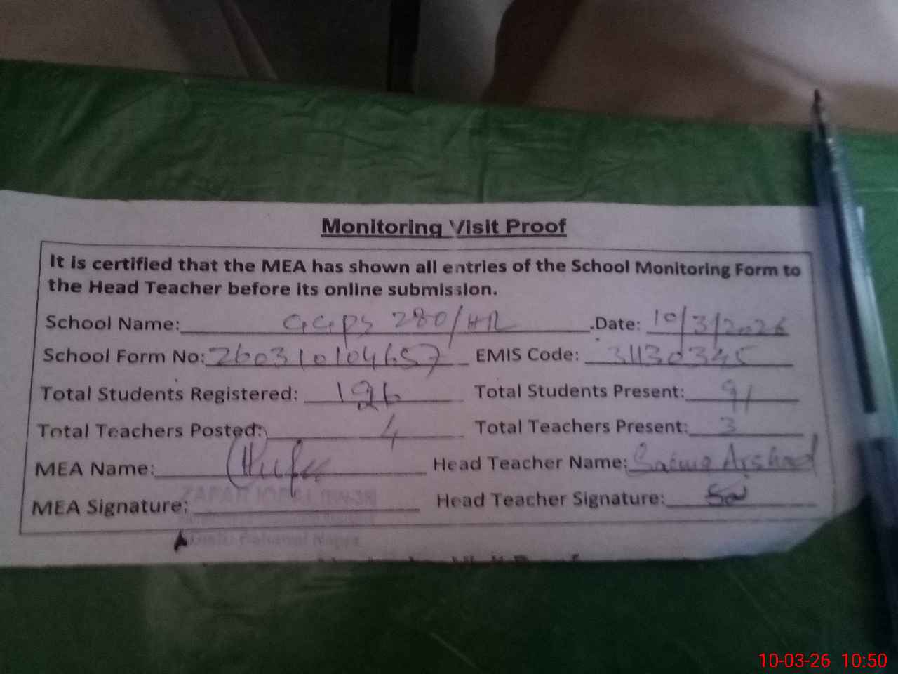 | EMIS Code: 31130345 | Name of School: GGPS CHAK NO 280 HR | |||