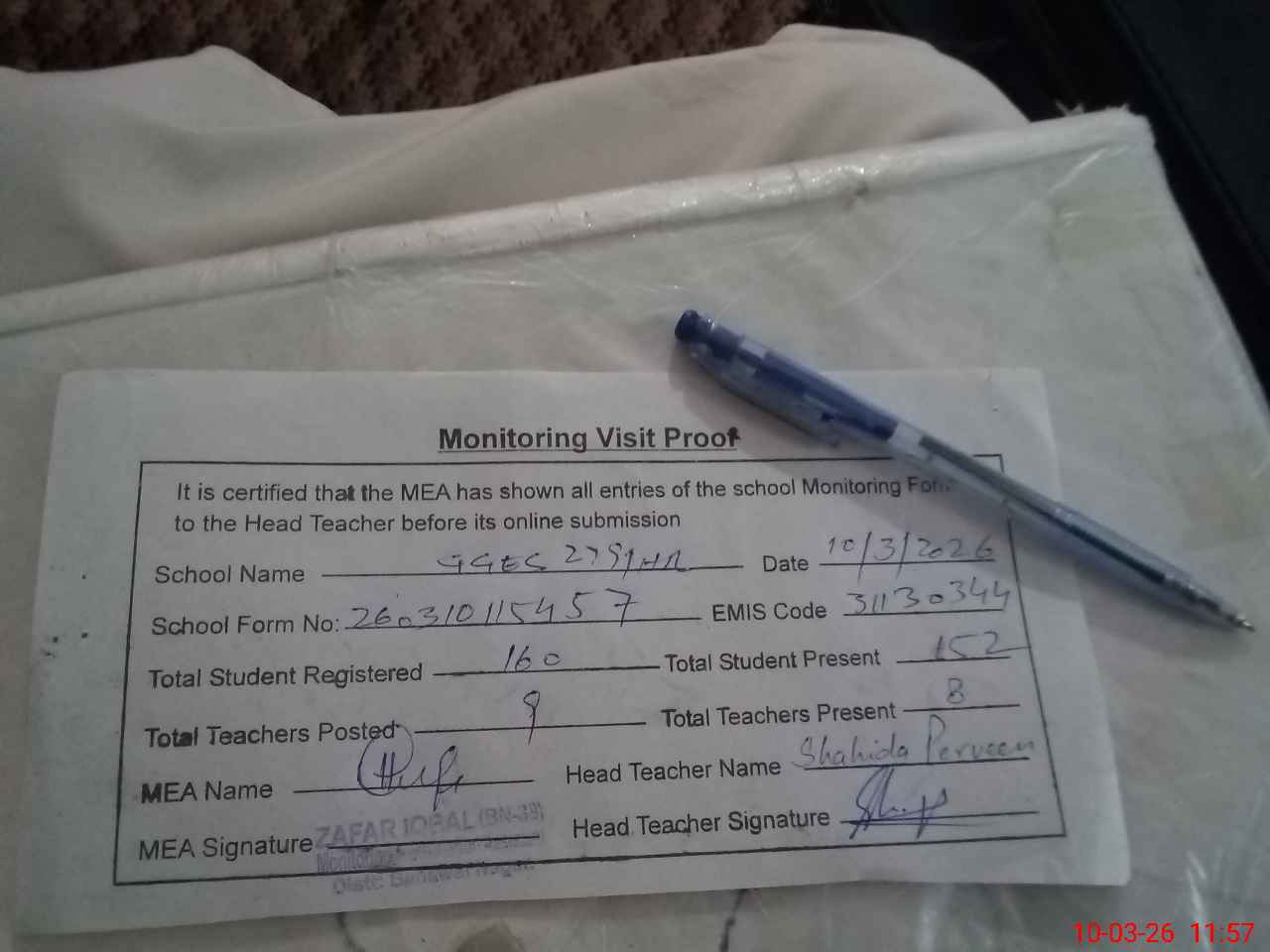 | Monitoring Date: 10-03-2026 | Start Time: 10-03-2026 11:31 AM | End Time: 10-03-2026 11:57 AM | Name of MEA: Za**** Iq**** BN**** | |