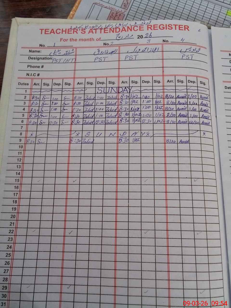 | Name: SH**** AL**** Designation: (School Headmaster's/Headmistress's) PST Phone/Cell Number: 03**** |
