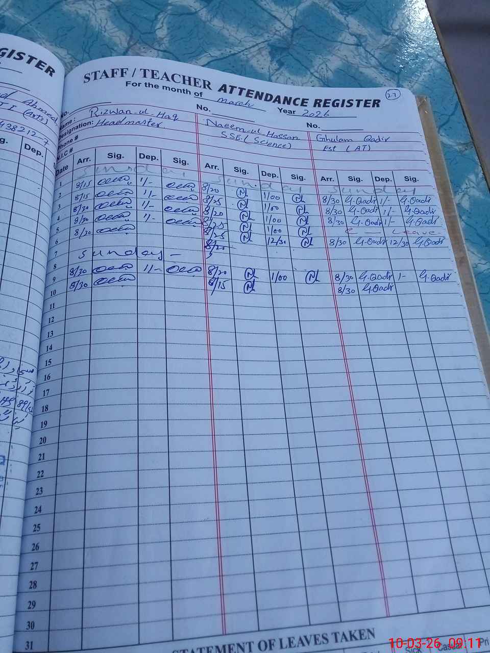 | 36**** | Sa**** Al**** Ch**** | PST Arts | Regular | 0 | 0 | 0 | 0 | 0 | 0 | 0 | 0 | 0 | Casual |