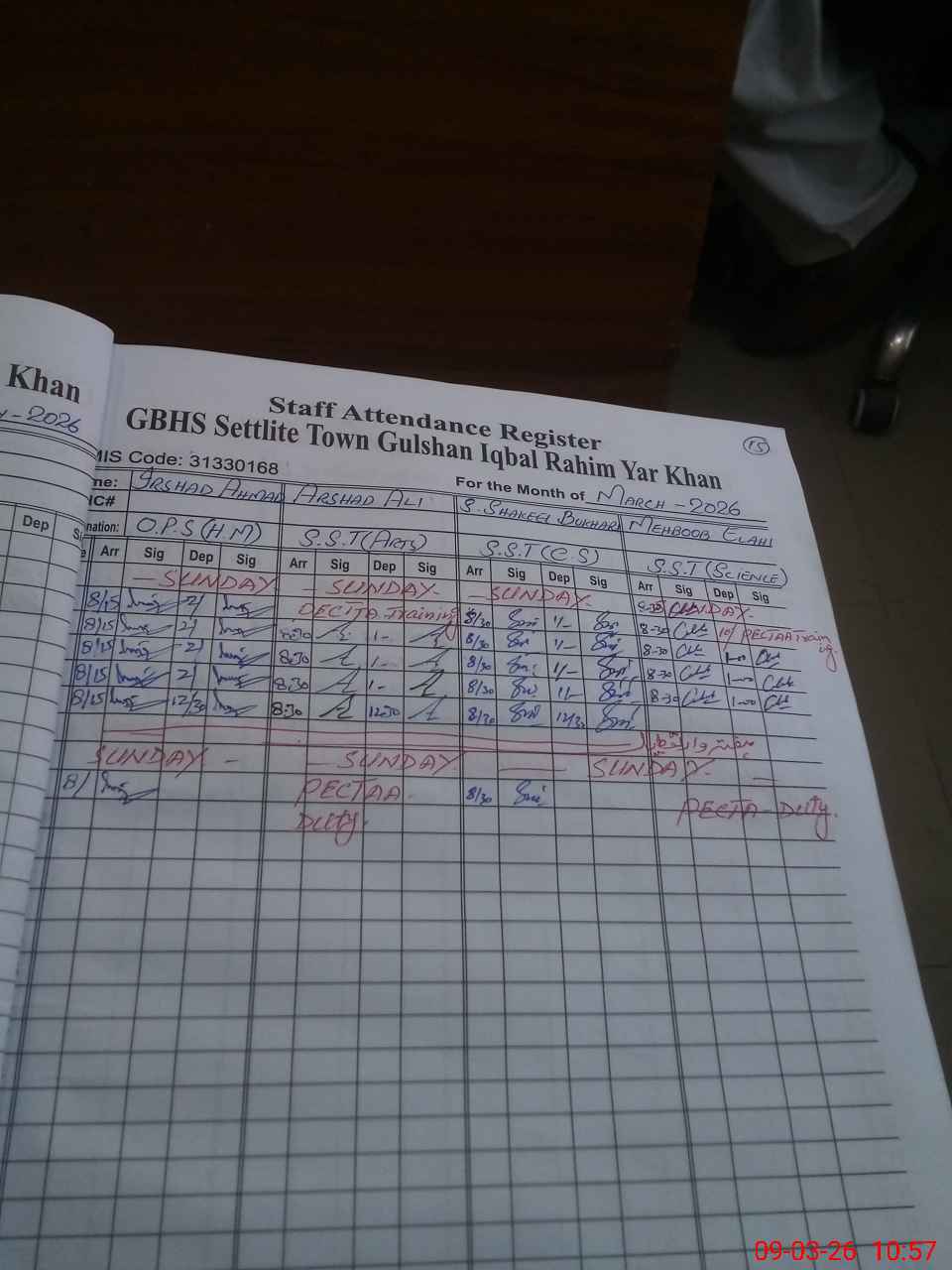 | 43**** | Sy**** Mu**** Ar**** Ja**** | EST Physical Education | Regular | 0 | 0 | 0 | 0 | 0 | 0 | 0 | 0 | 0 | Exam Duty |