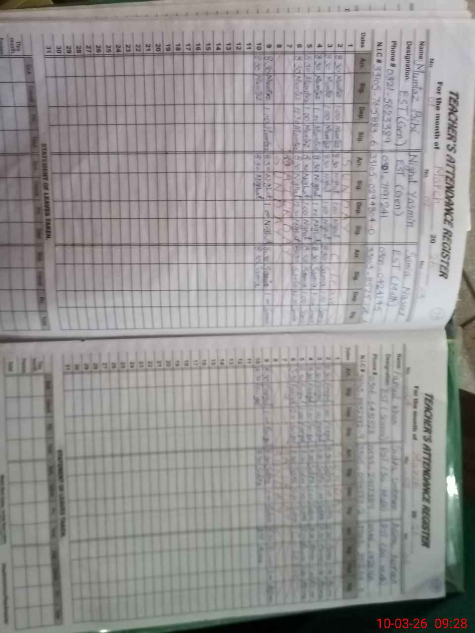 | CNIC | Full Name | Designation | R/C | Absence During Last Calender Month |