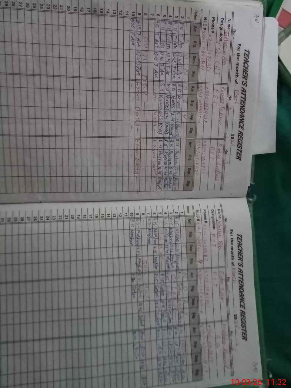 | Name: Ta**** Ar**** Designation: (School Headmaster's/Headmistress's) PST Phone/Cell Number: 03**** |