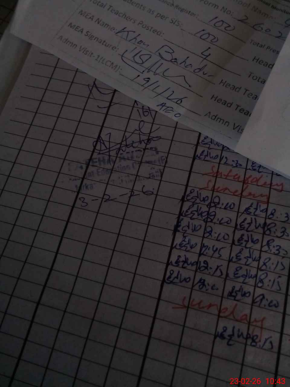 | Attendance Register | Head Teacher | MEA with School | Visit Proof |