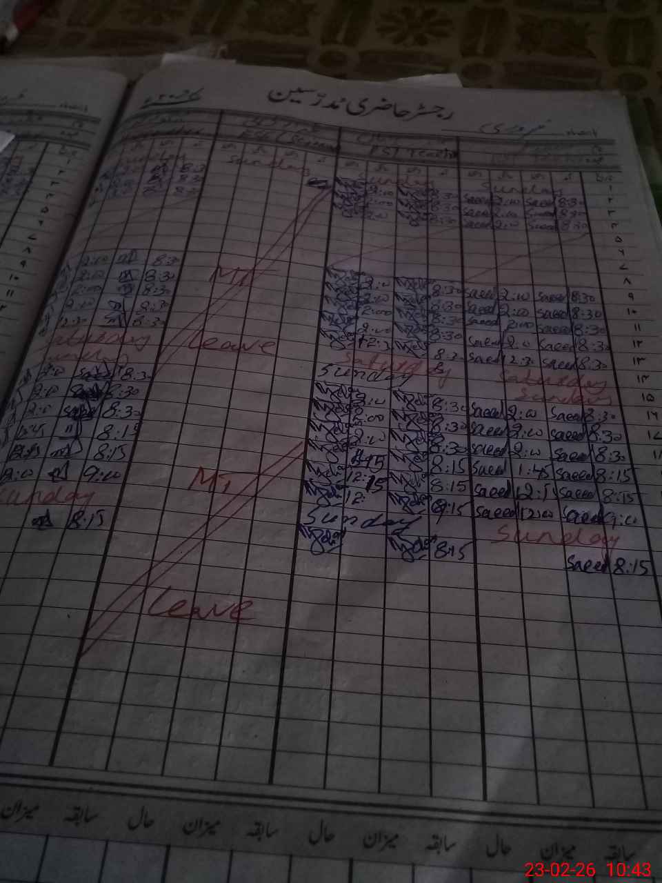 | CNIC | Full Name | Designation | R/C | Absence During Last Calender Month |