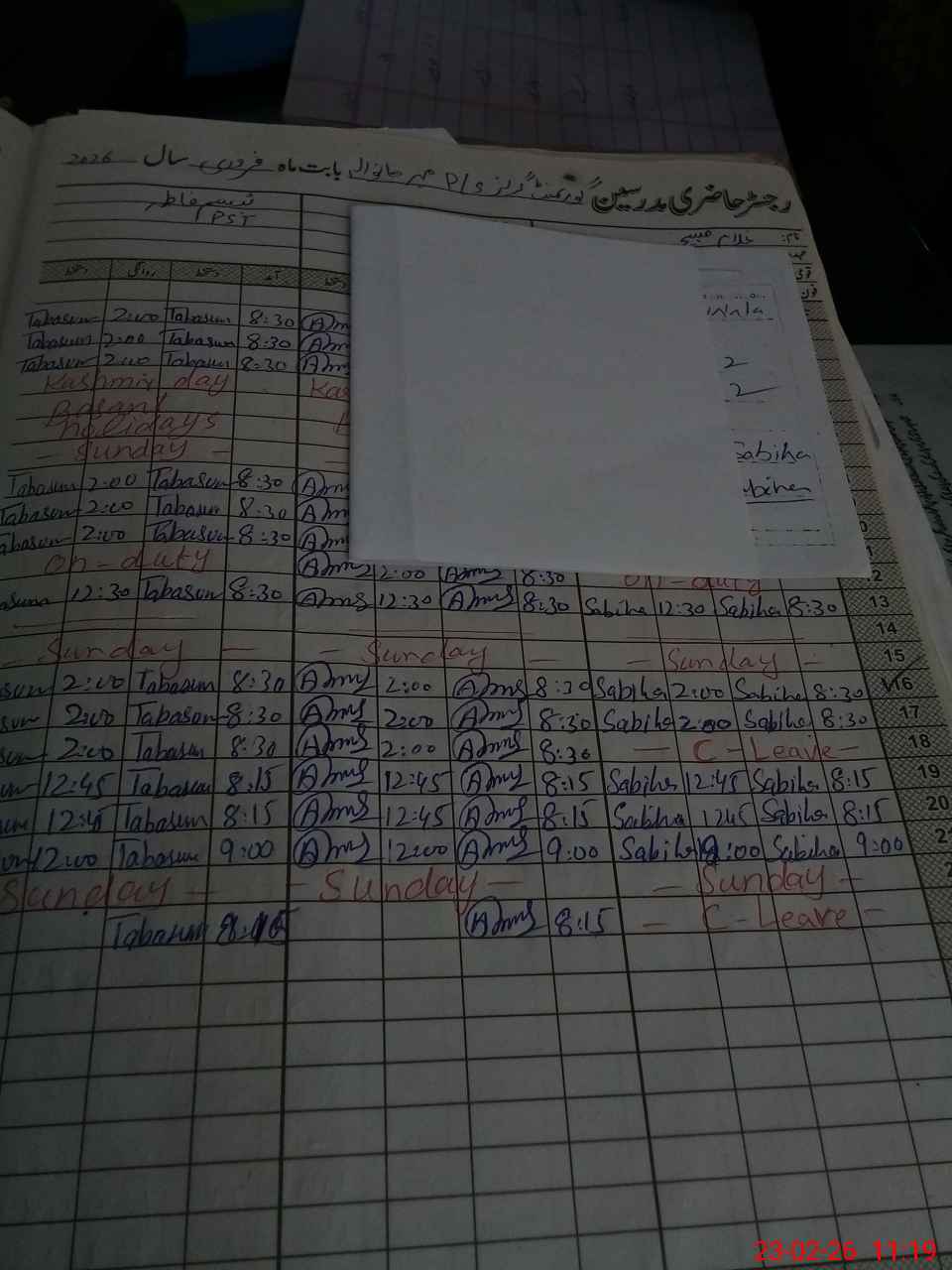 | Leave | Duty | Absent | Maternity | Medical | Ex- Pak |