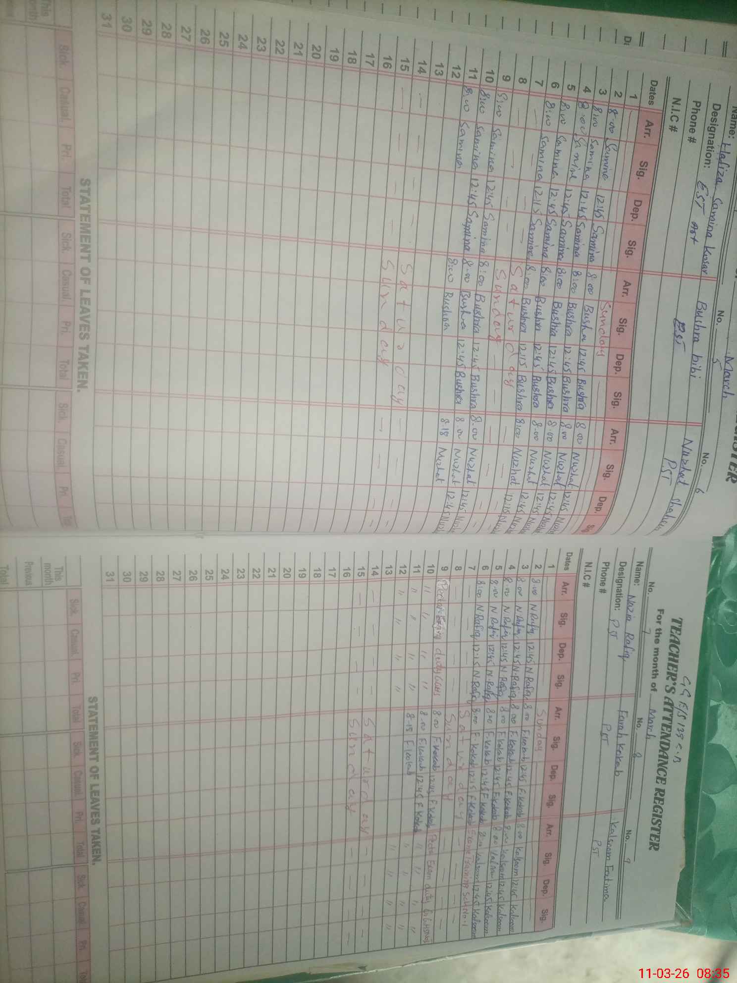 | CNIC | Full Name | Designation | R/C | Absence During Last Calender Month |