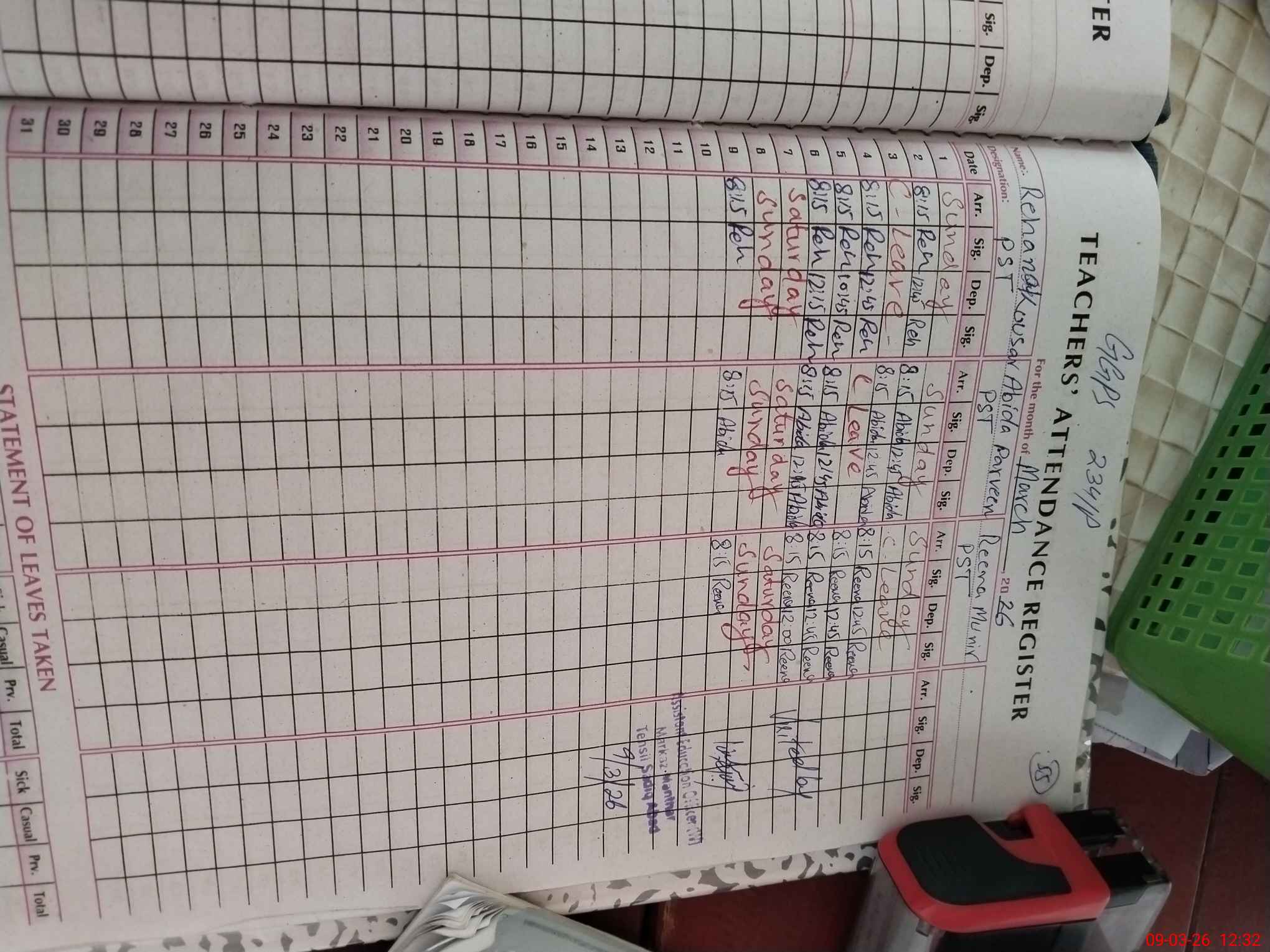 | Name: Re**** Ko**** Designation: (School Headmaster's/Headmistress's) PST Phone/Cell Number: 03**** |