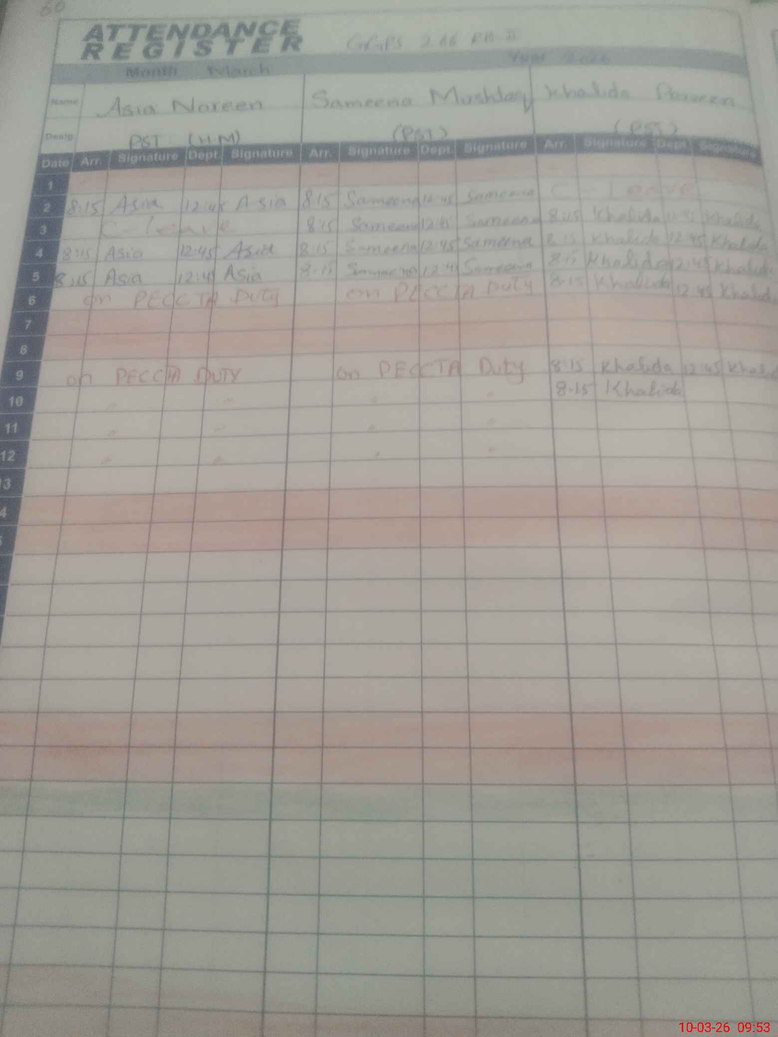 | 33**** | As**** No**** | PST | Regular | 0 | 0 | 0 | 0 | 0 | 0 | 0 | 0 | 0 | Exam Duty |