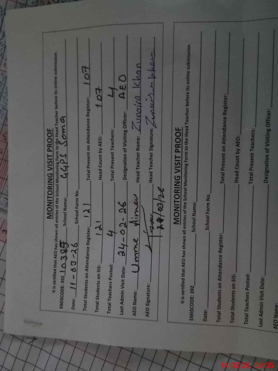 | EMIS Code: 39210385 | Name of School: GGPS CHAK SOMA | |||
