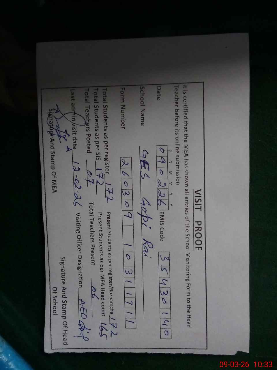 | Certified that this School was Inspected by the Undersigned MEA/DMO Today and the Information Stated Above is as Per Record. | |||||