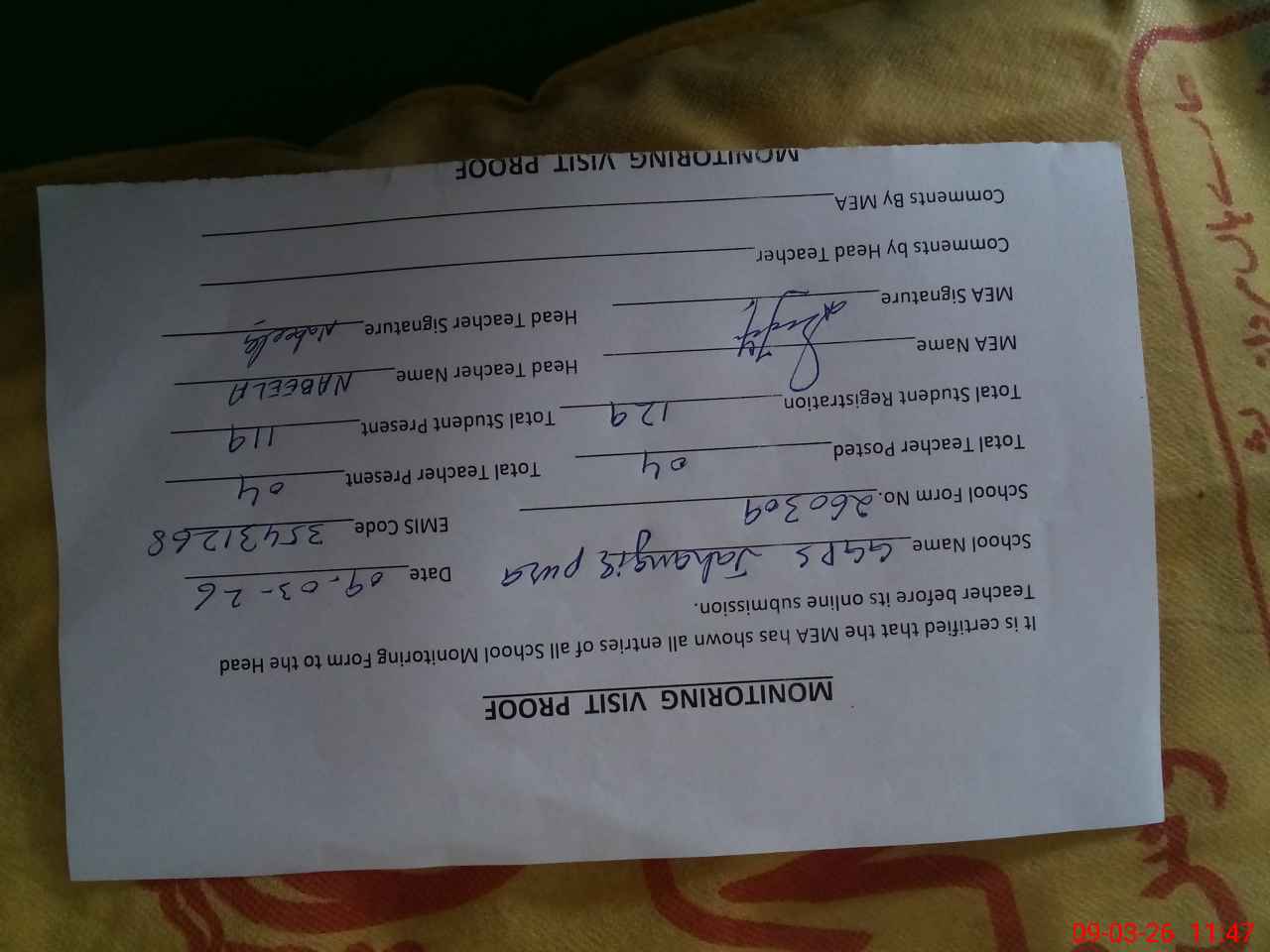 | EMIS Code: 35431268 | Name of School: GGPS JAHANGIR PURA | |||