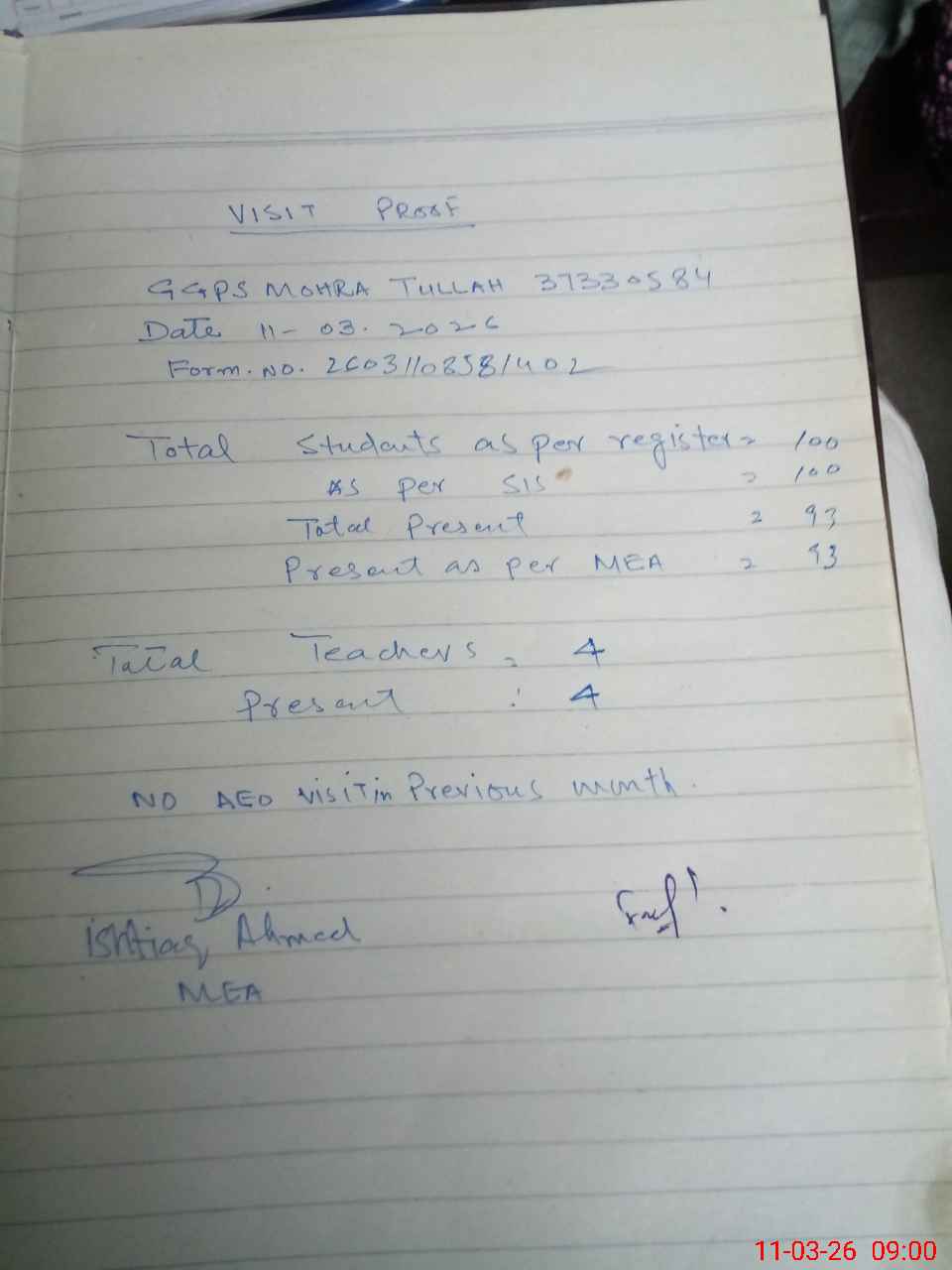 | EMIS Code: 37330584 | Name of School: GGPS MOHRA TULLA | |||