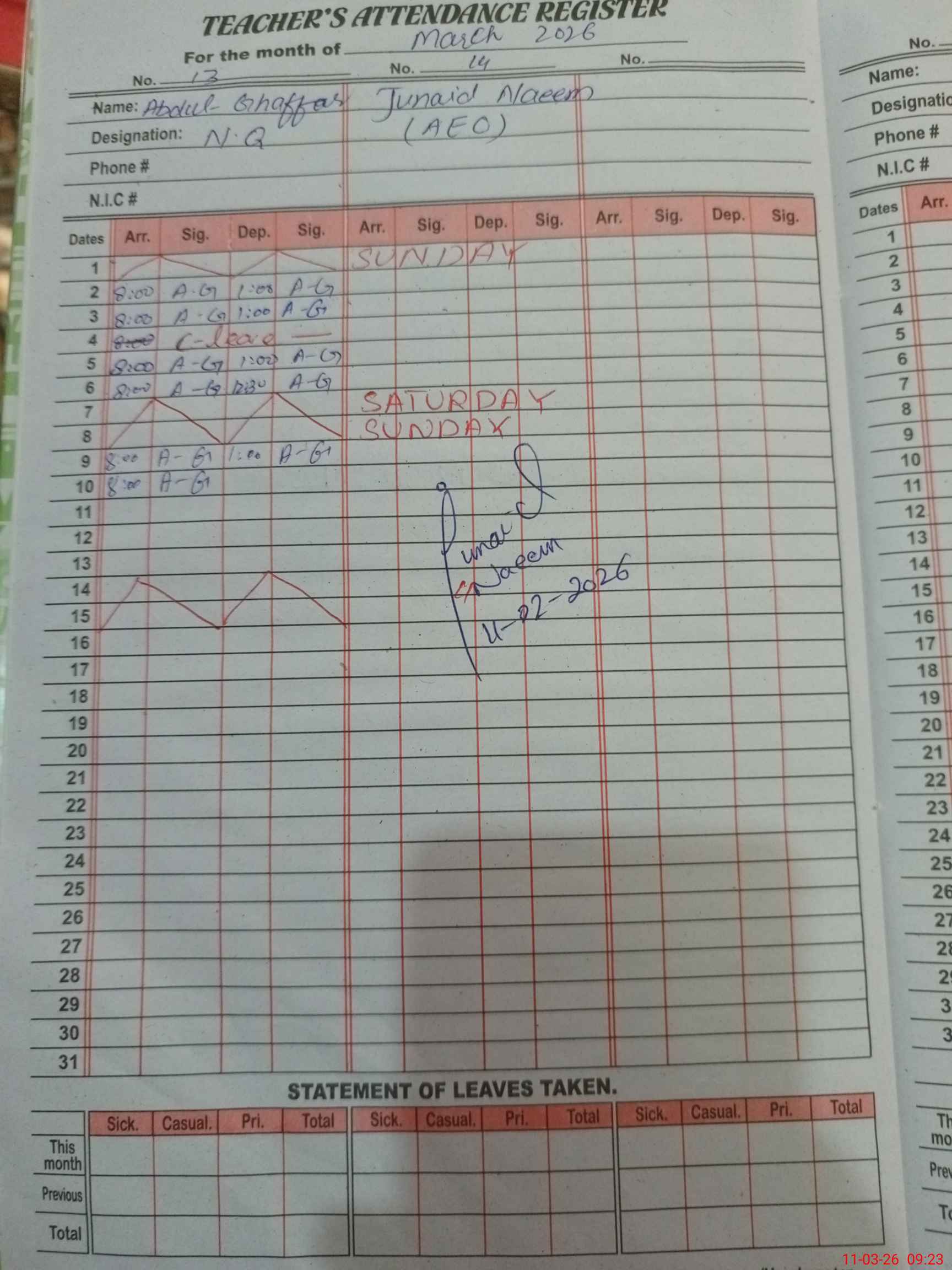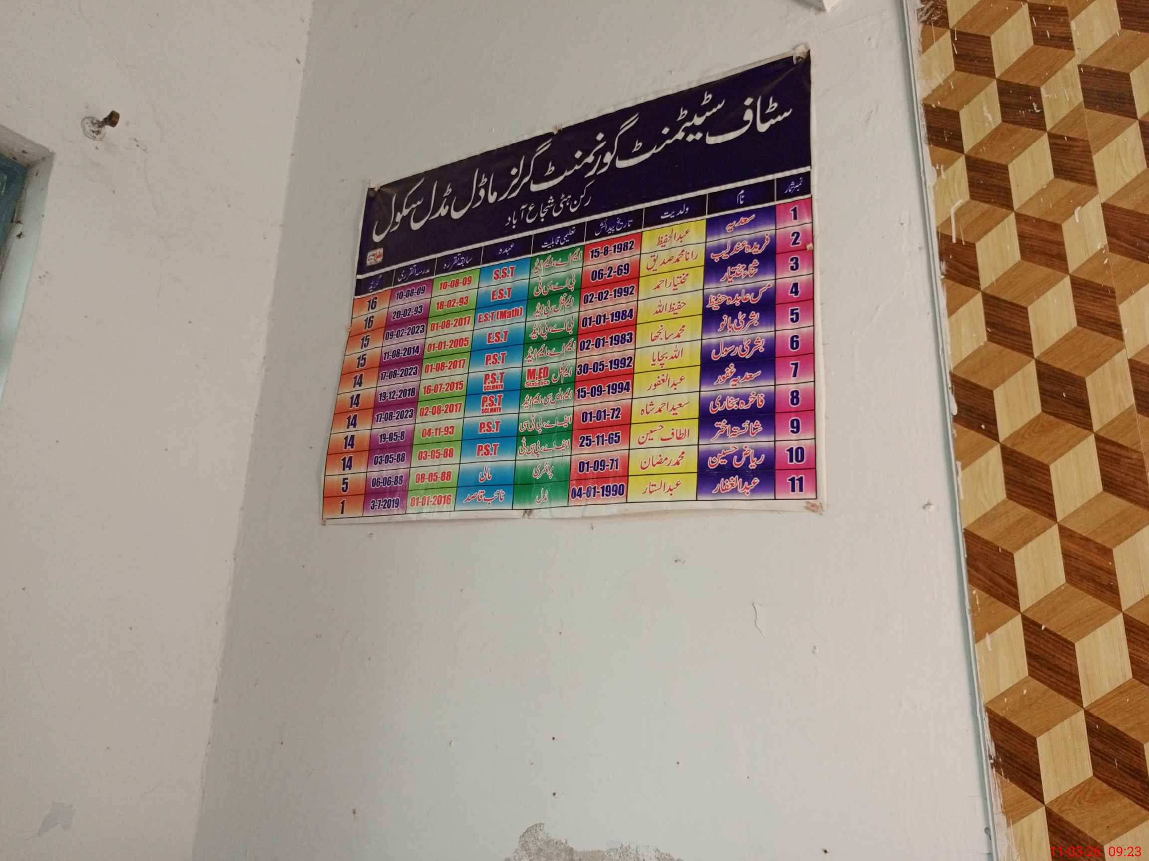 | 36**** | Sa**** Gh**** | PST Science/Maths | Regular | 0 | 0 | 0 | 0 | 0 | 0 | 0 | 0 | 0 | Maternity |