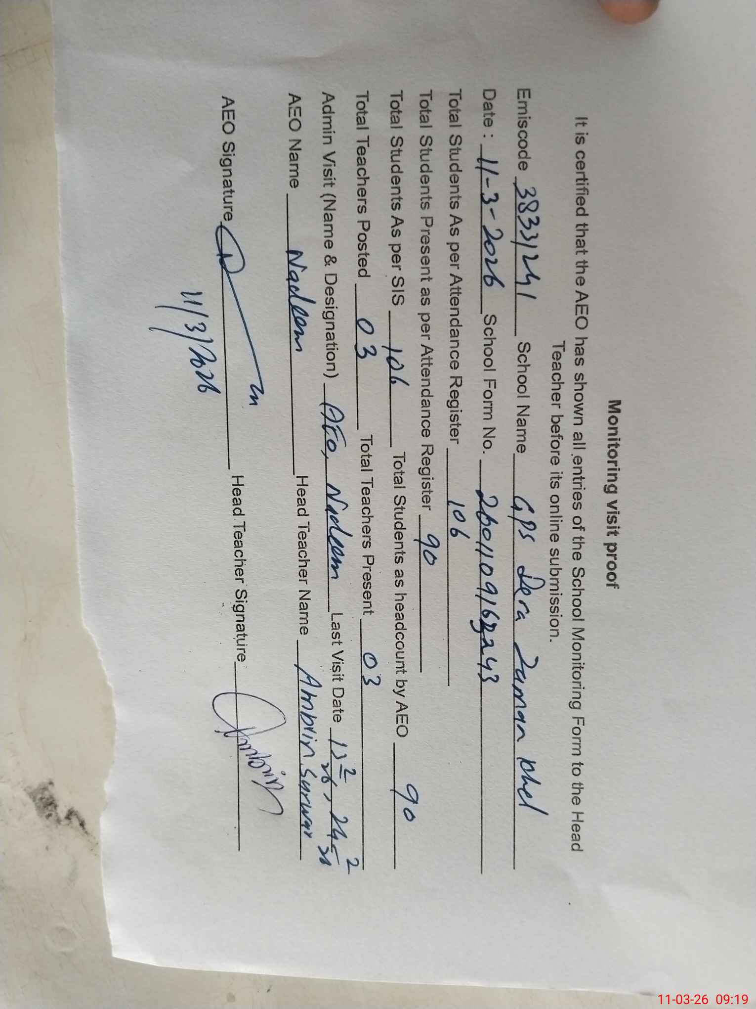| EMIS Code: 38331241 | Name of School: GPS DERA ZAMAN KHEL PO CHASHMA BERAJ COLONY | |||