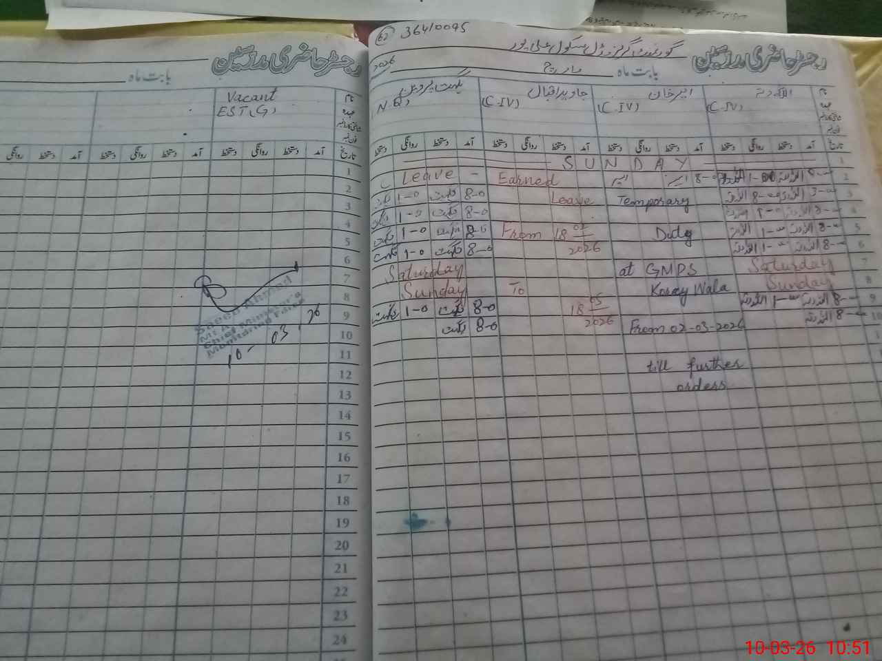 | 36**** | Su**** Pe**** | PST Arts | Regular | 0 | 0 | 0 | 0 | 0 | 0 | 0 | 0 | 0 | Exam Duty |