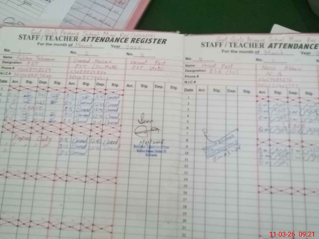 | Name: FA**** TE**** Designation: (School Headmaster's/Headmistress's) PST Phone/Cell Number: 03**** |