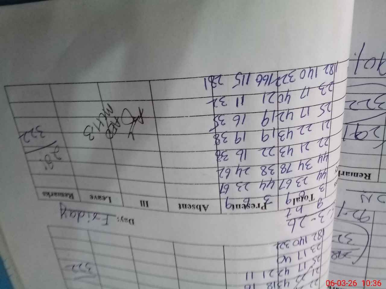 | No. of Students Present - Female | 0 | 3 | 38 | 22 | 19 | 19 | 21 | 166 | ||||||||