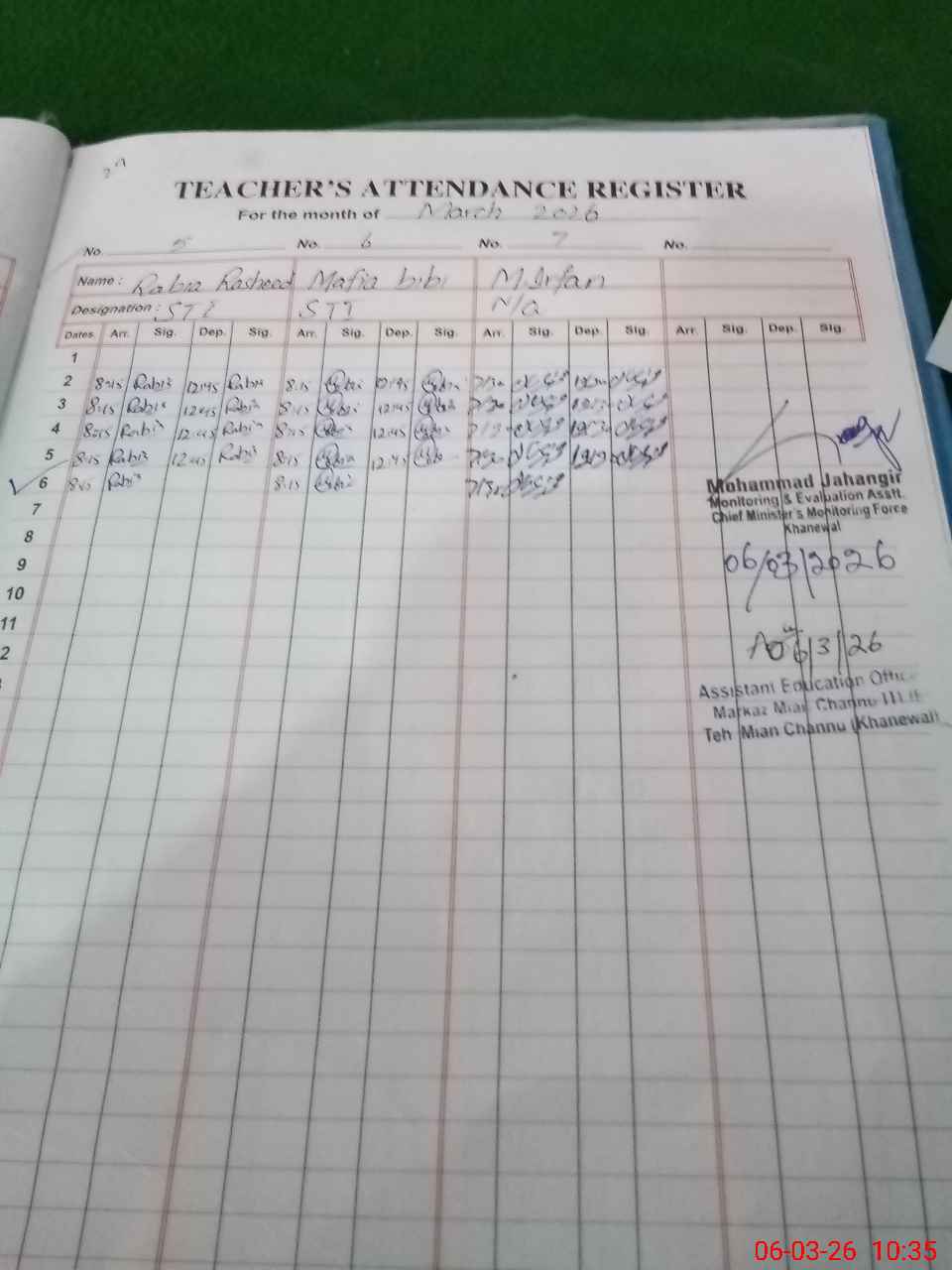 | District: KHANEWAL | Tehsil: MIAN CHANNU | Markaz: MIAN CHANNU-III - FEMALE | Level: Primary | |