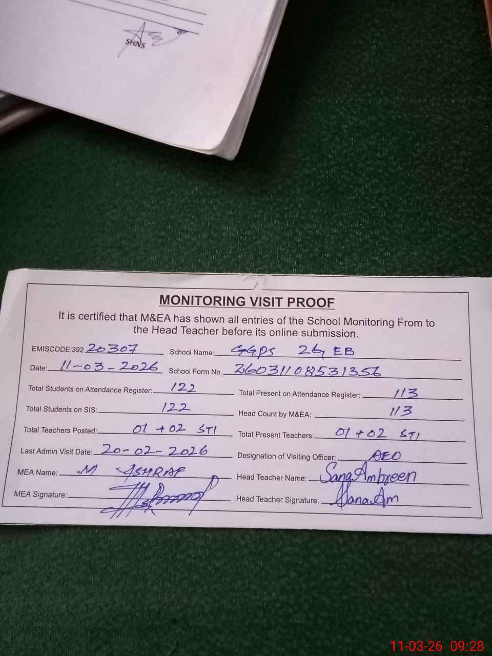 | EMIS Code: 39220307 | Name of School: GGPS 26 EB | |||