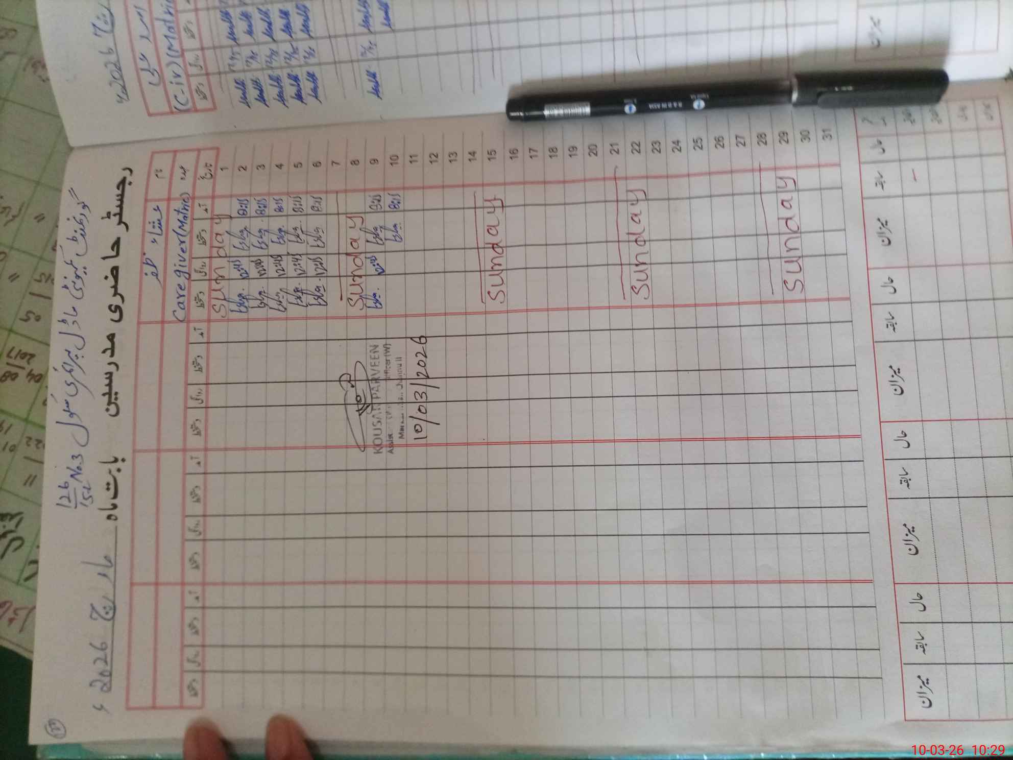 | No. of Students Present - Male | 0 | 27 | 17 | 4 | 7 | 16 | 10 | 96 | ||||||||